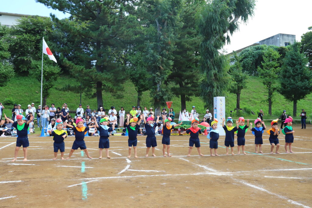 初めての運動会に緊張する姿もありましたが、一人ひとりが表現し、友達と楽しく踊ることができました。