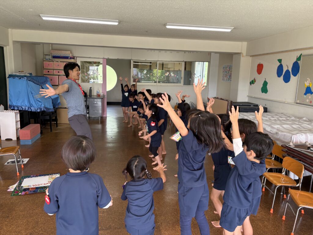 はじめに、英語のうたに合わせて『ご挨拶の踊り』をしました。