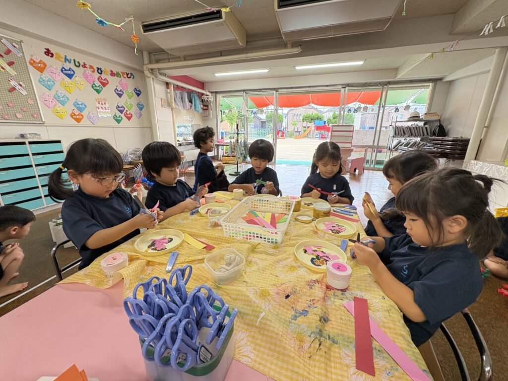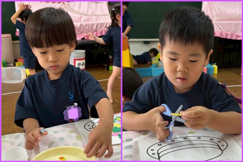 3歳児桜組でははさみを使った製作遊びを継続して行っています。