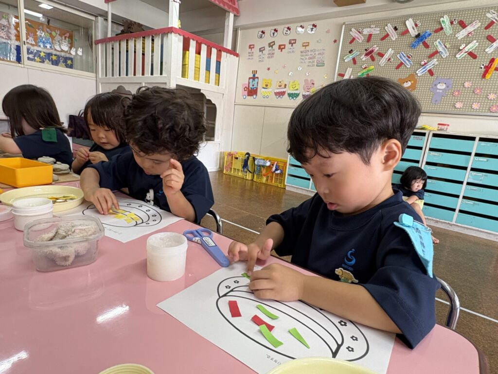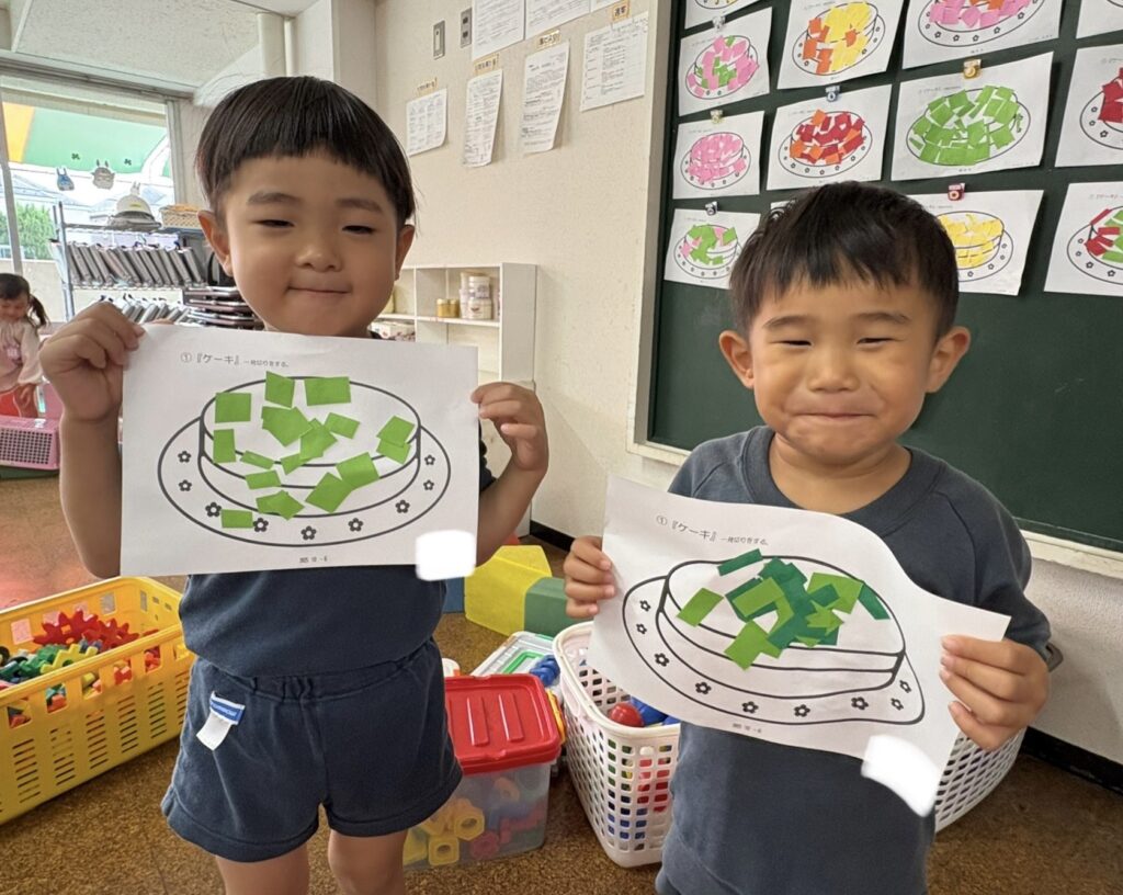 【3歳児 桜組】はさみ遊び「ケーキ」