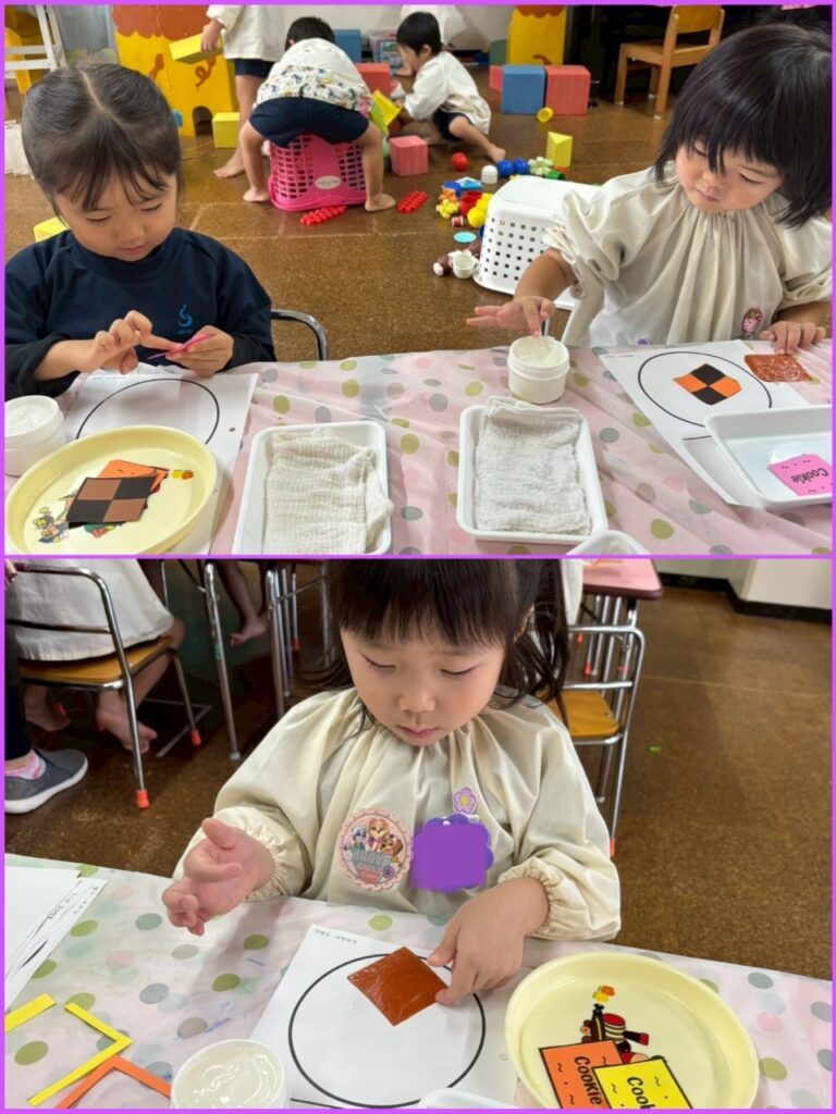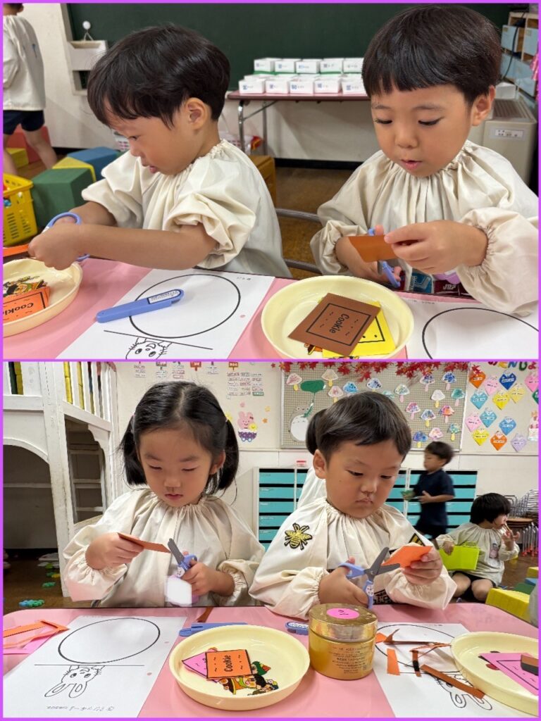 【3歳児 桜組】はさみで連続切り②~クッキー~