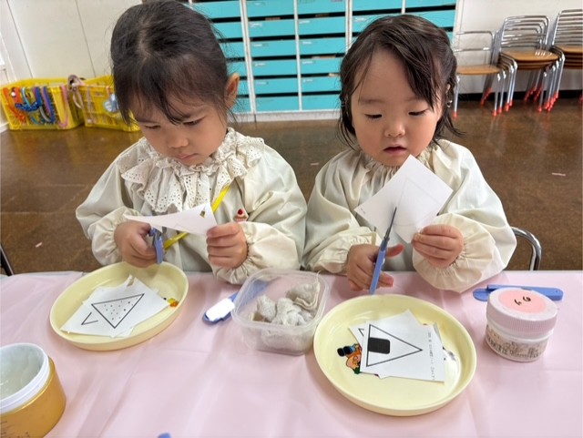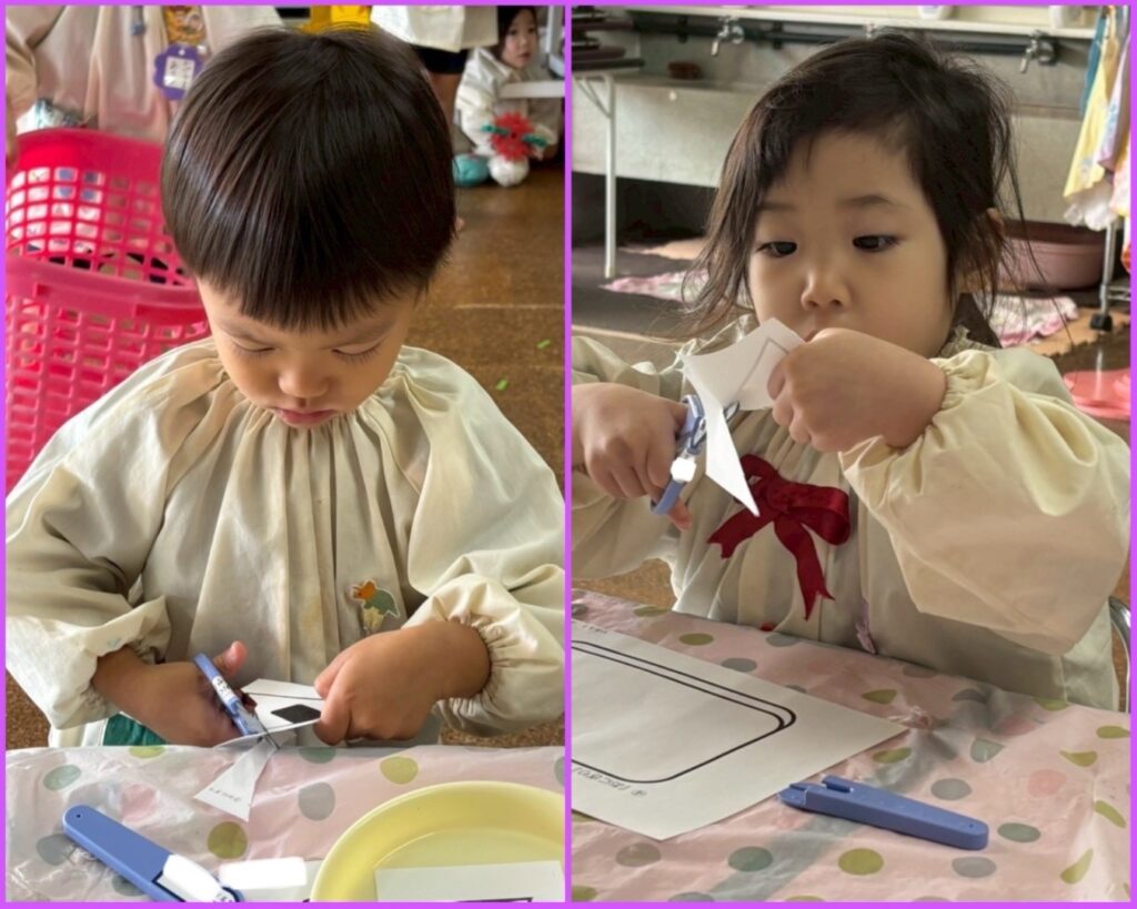 【3歳児 桜組】はさみで連続切り③~おにぎり~