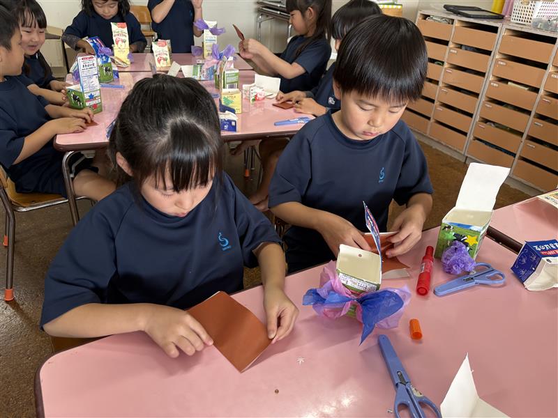 どんぐりを拾うのをとても楽しみにしている松組さんはどんぐりを拾うのに「どんぐりバッグを作りたい」と意気込み、皆で作ることにしました。