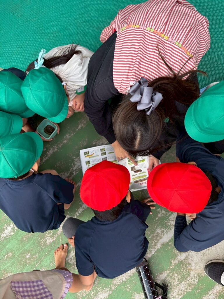 さつまいも掘りをしている中で、芋虫を見つけた幼児もいました。