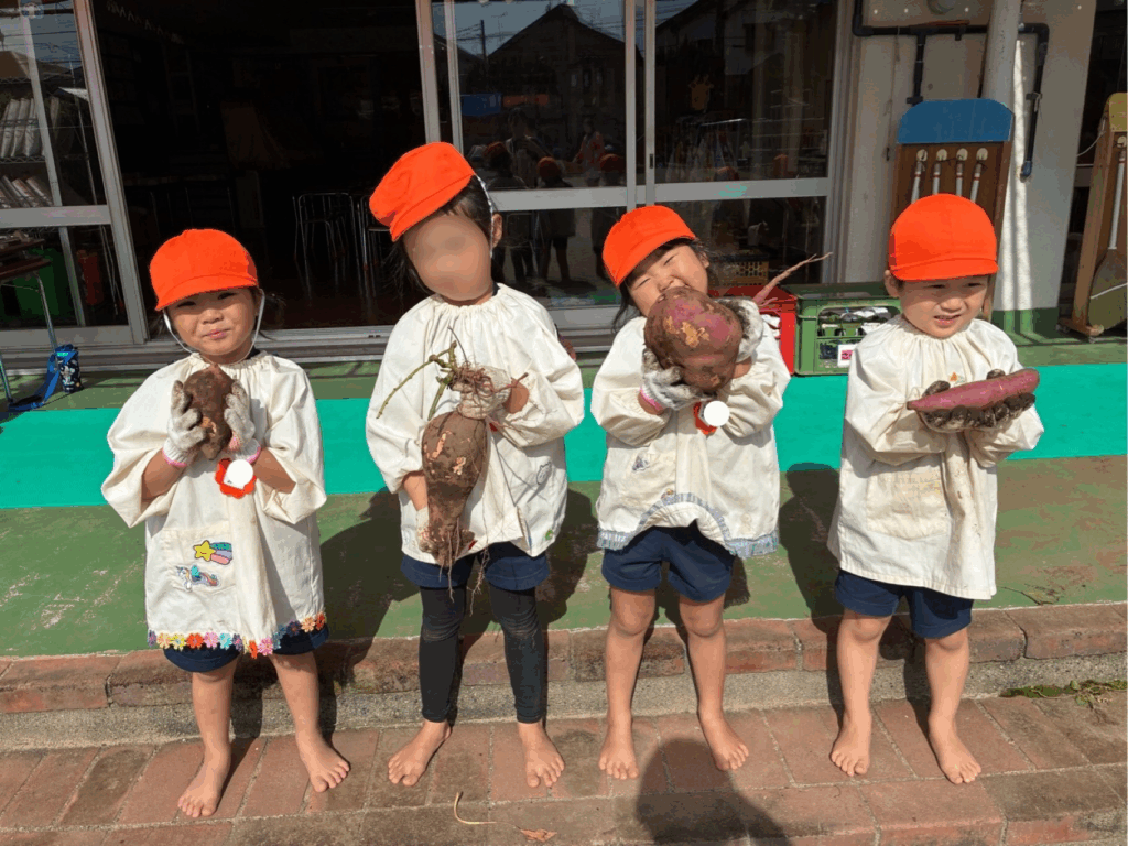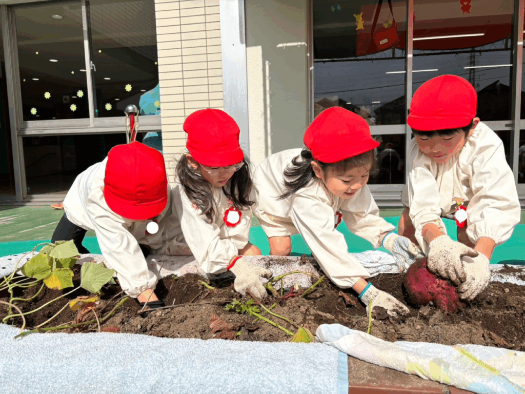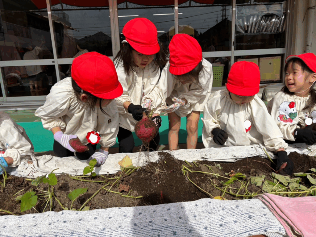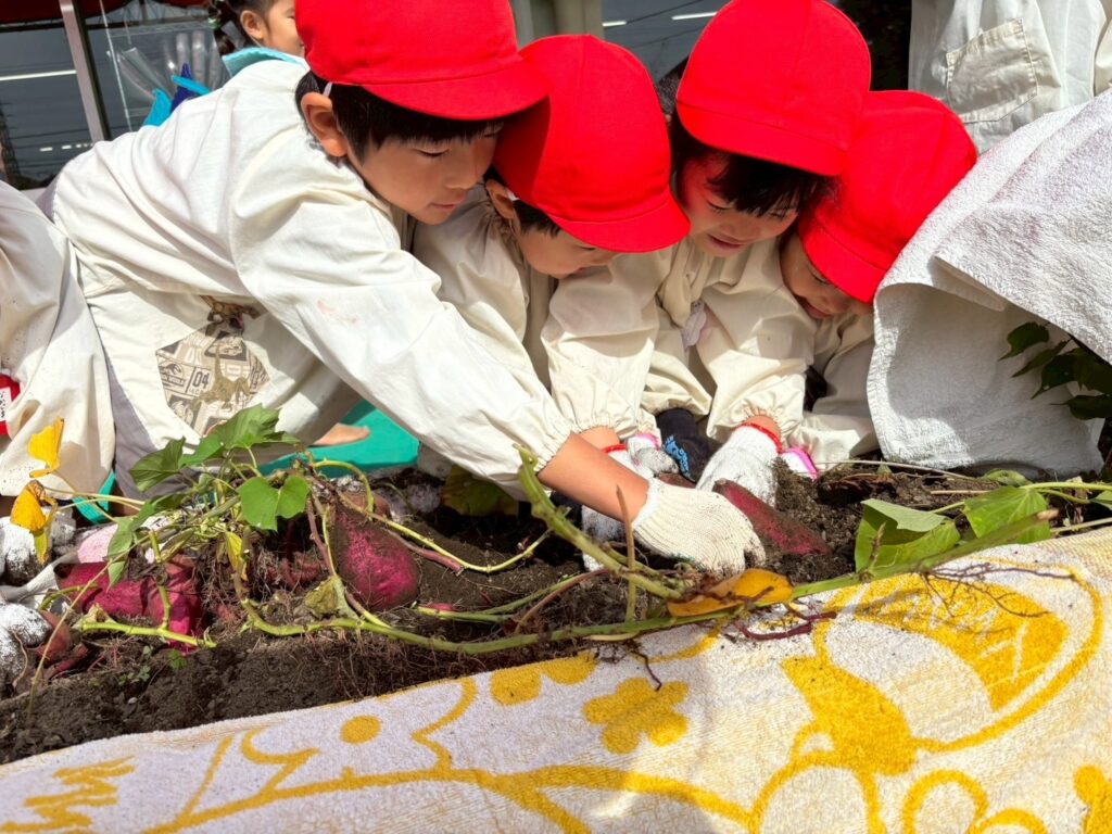 また、土の奥底に埋まっているさつまいもを友達と一緒に協力して掘り起こそうとする姿が見られました。