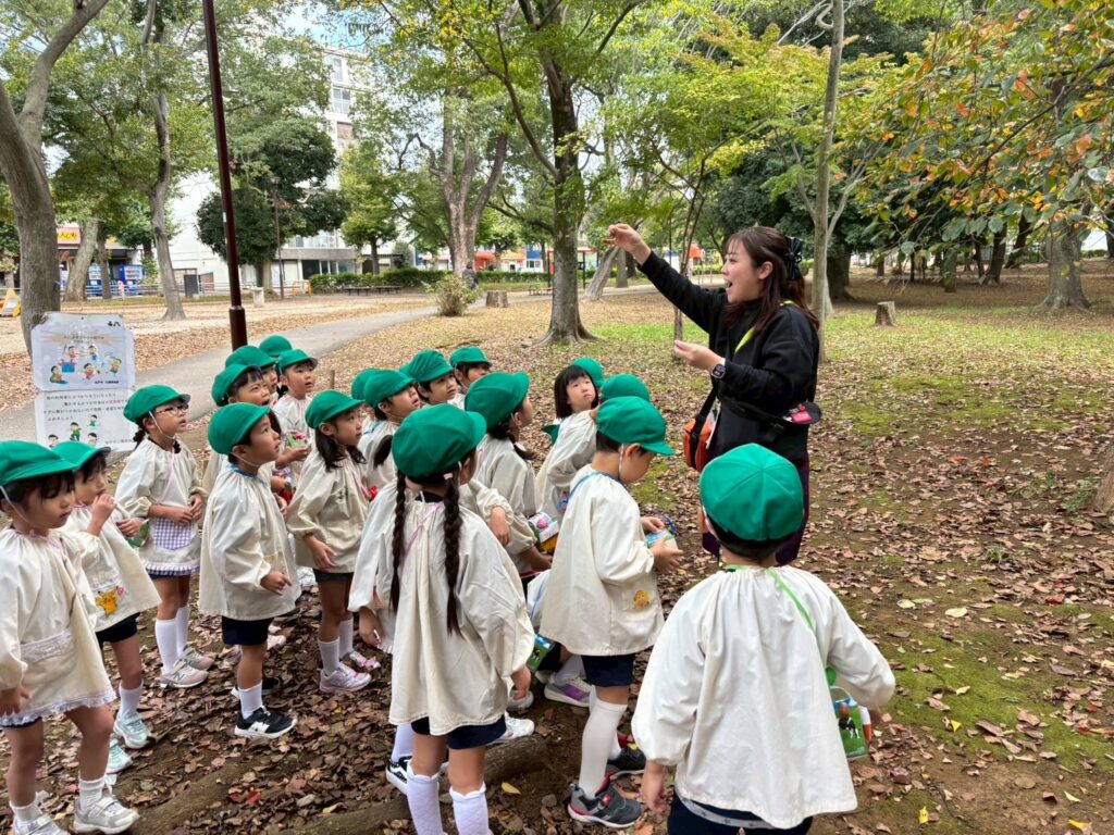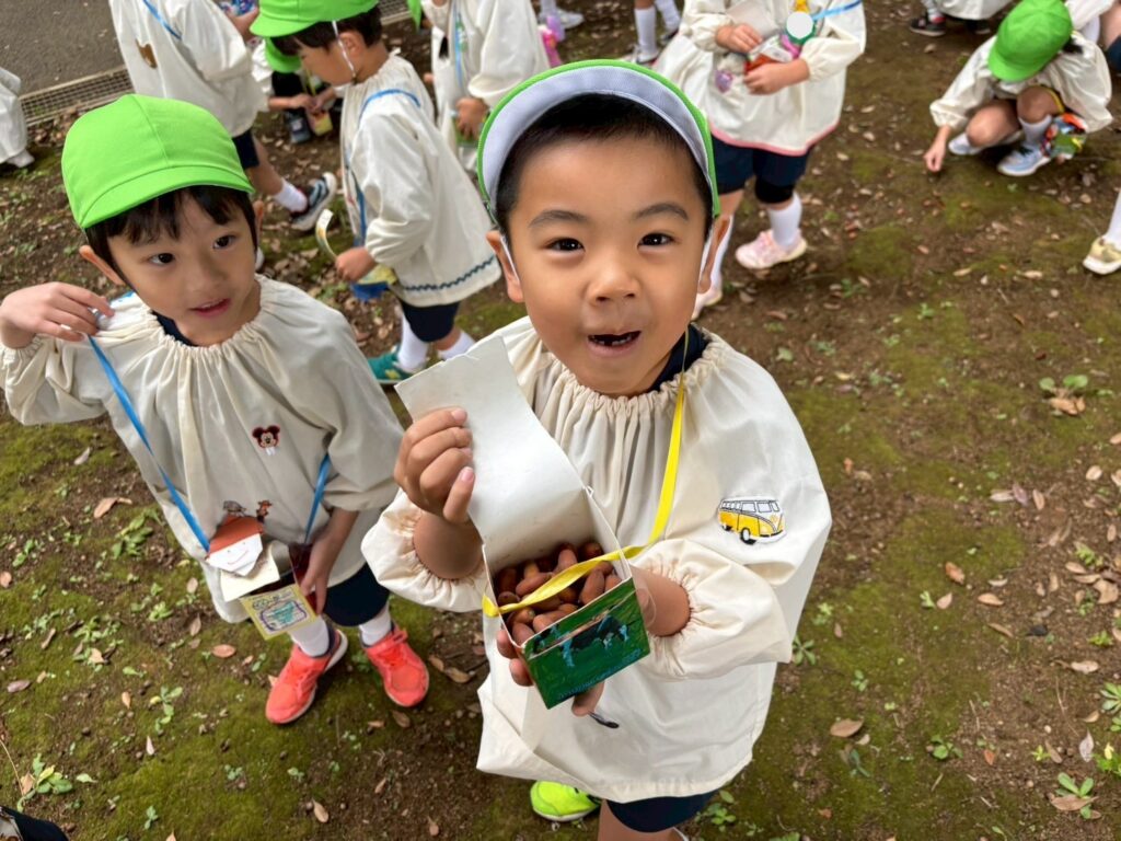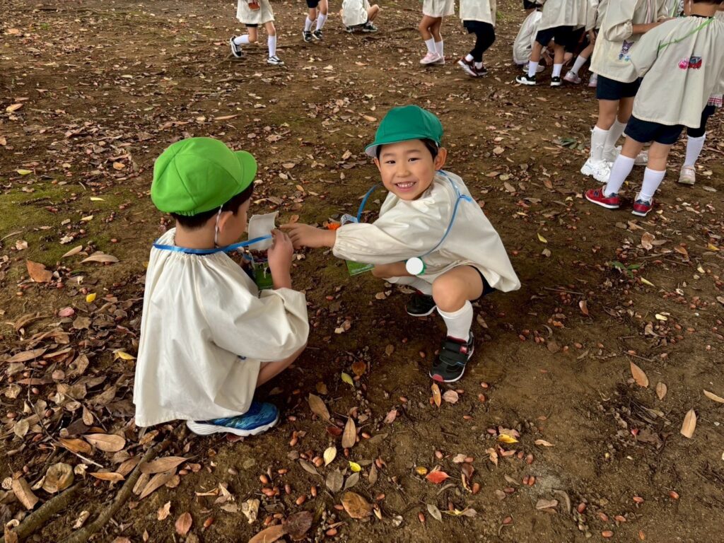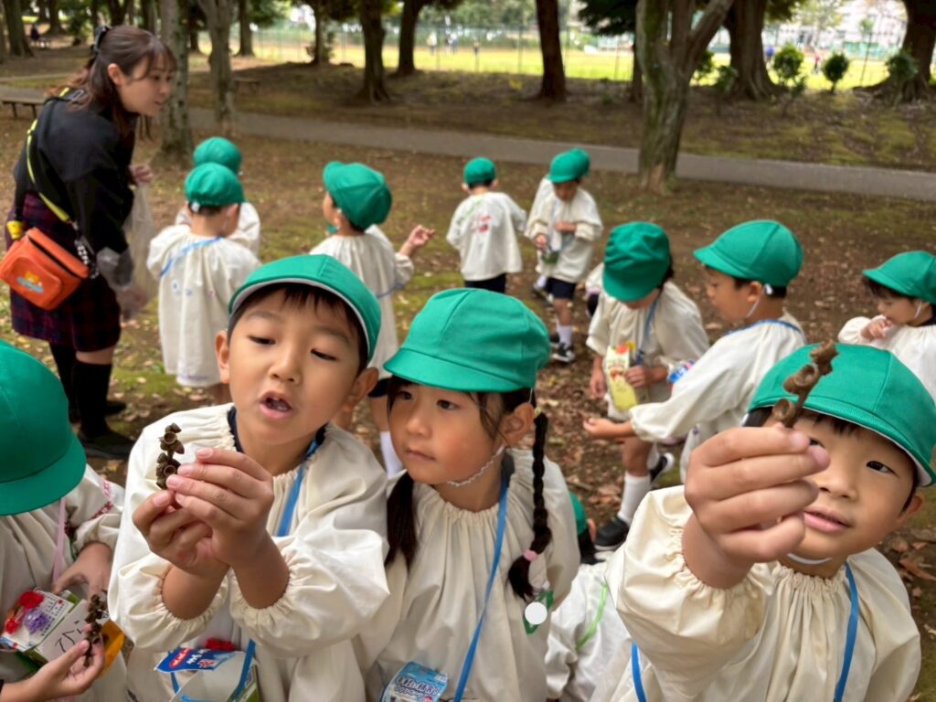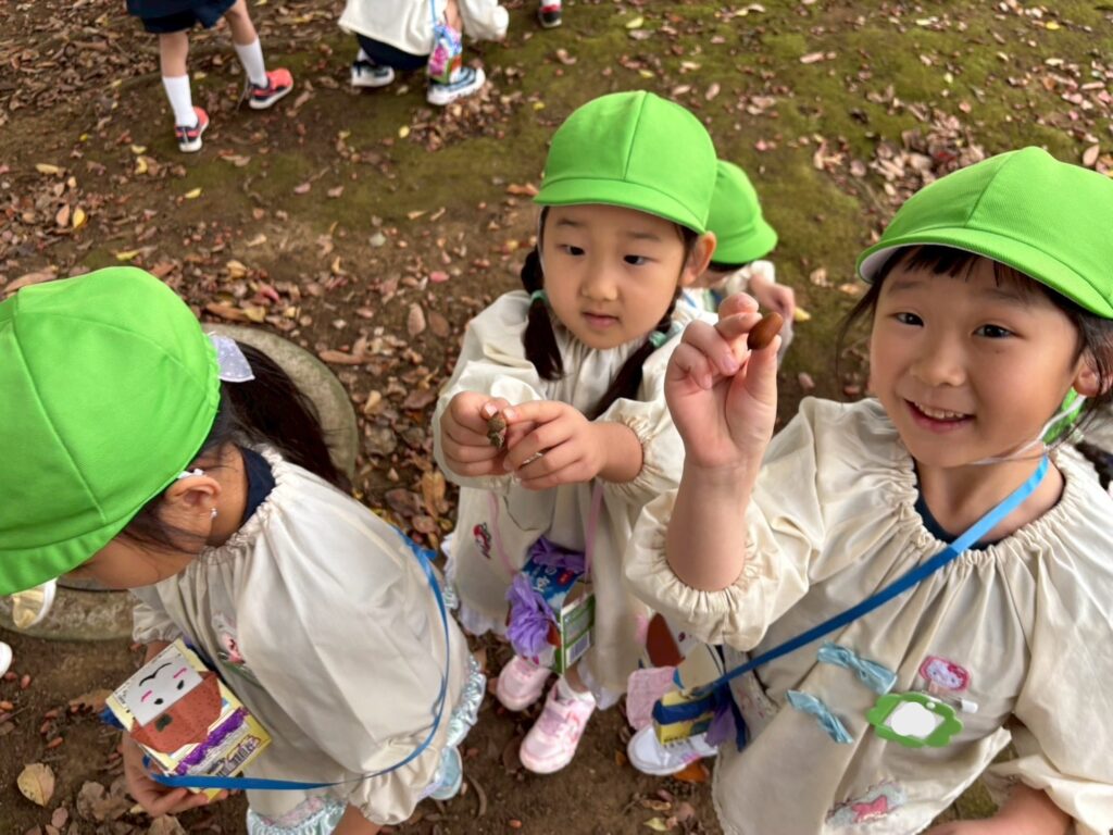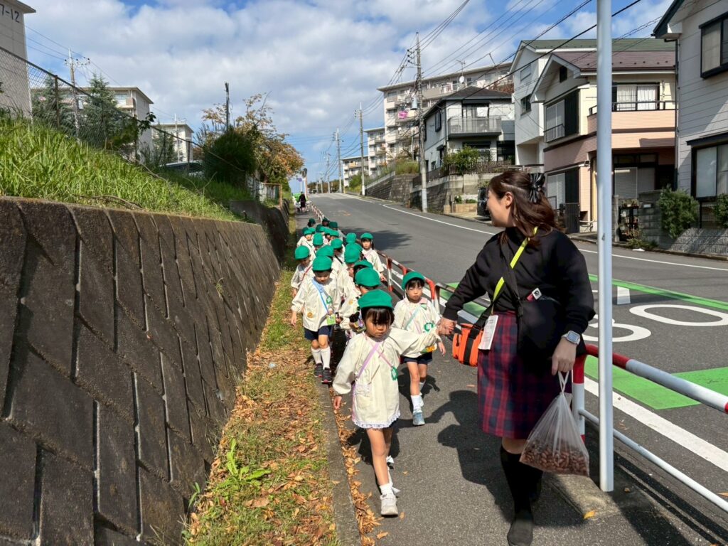 10月30日(木)、園外活動として徒歩で小金原公園に行き、どんぐり拾いに行きました。