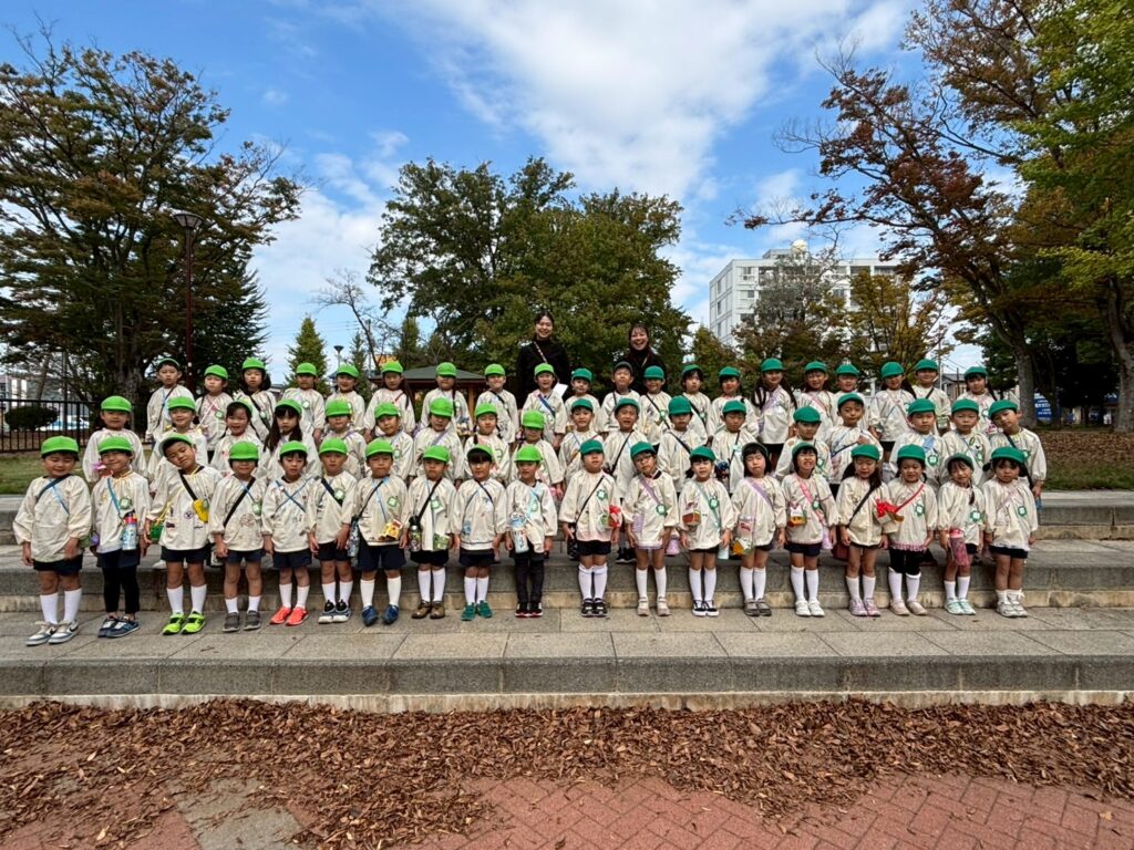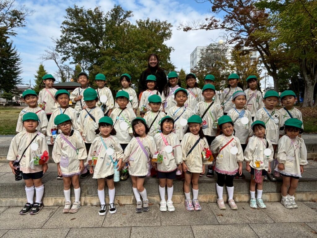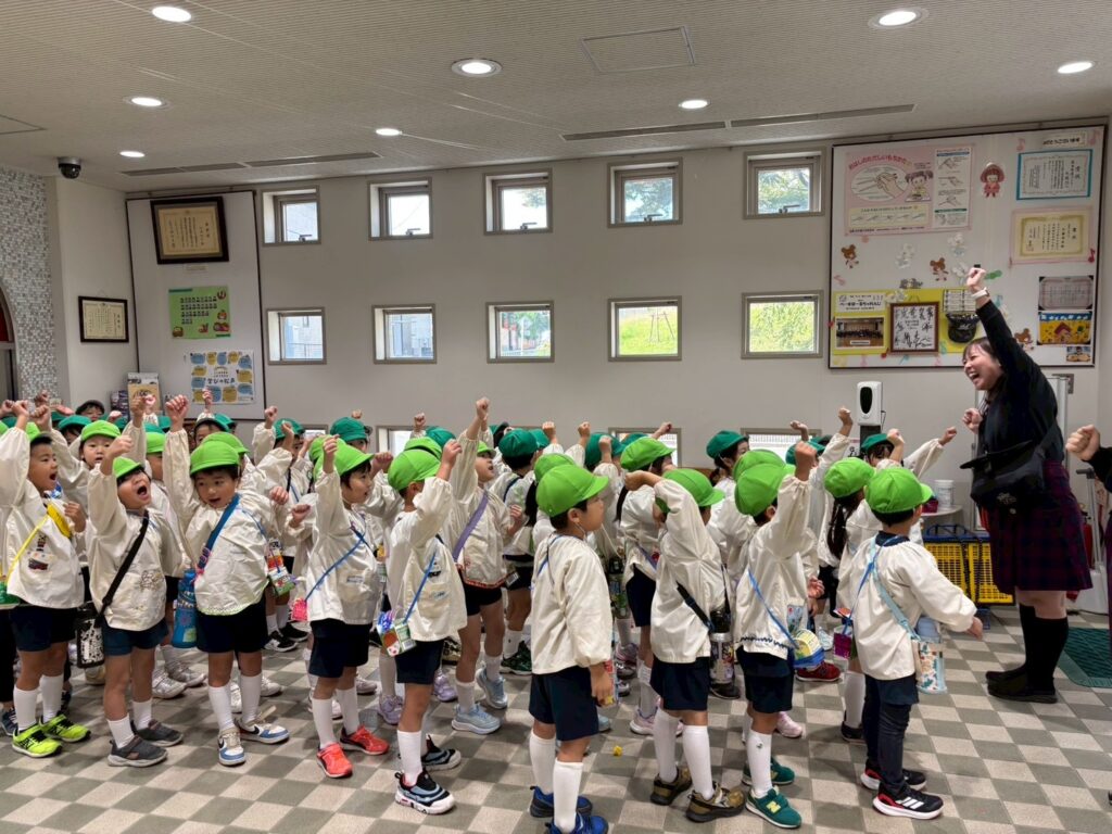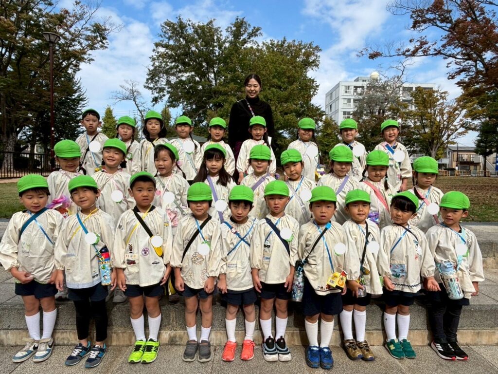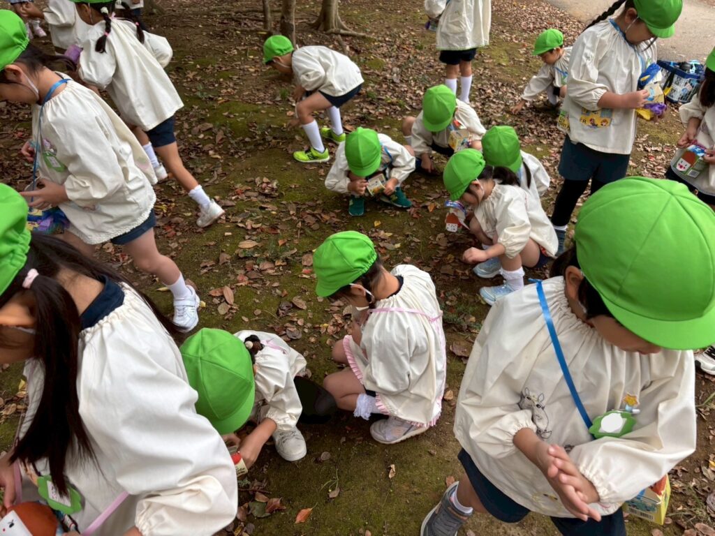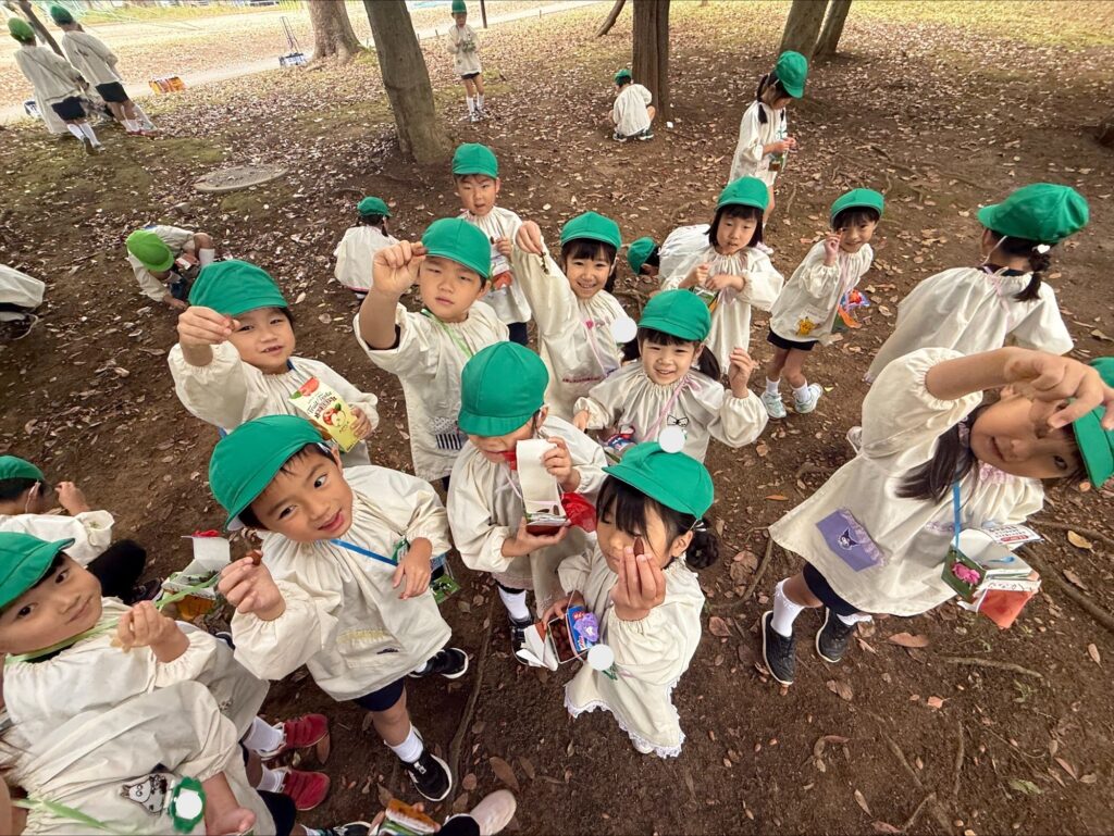 10月30日(木)、園外活動として徒歩で小金原公園に行き、どんぐり拾いに行きました。