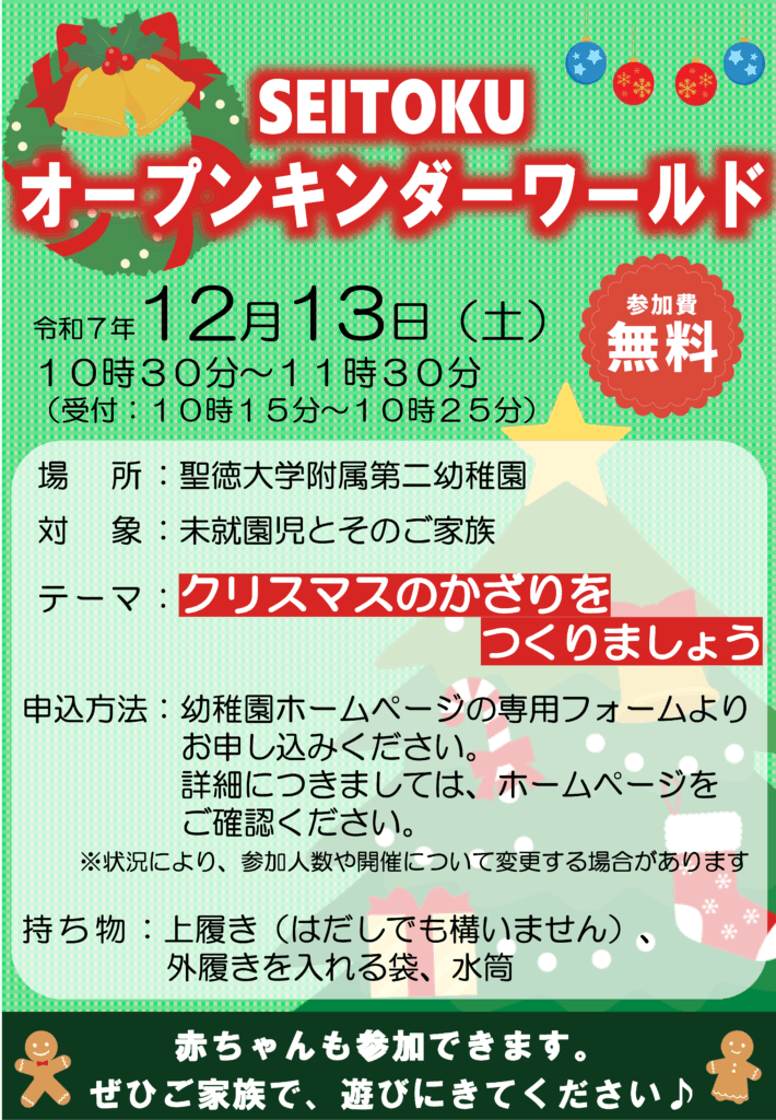 12月13日(土)SEITOKUオープンキンダーワールド(SOK)のお申し込み