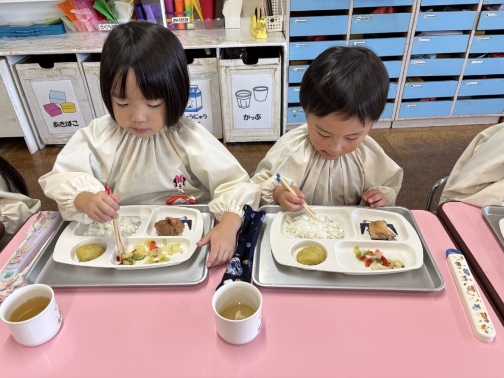 パーティーのあとは、さつまいもがたくさん使われたお給食をいただきました。