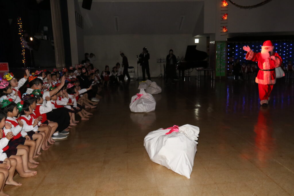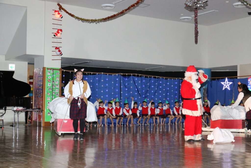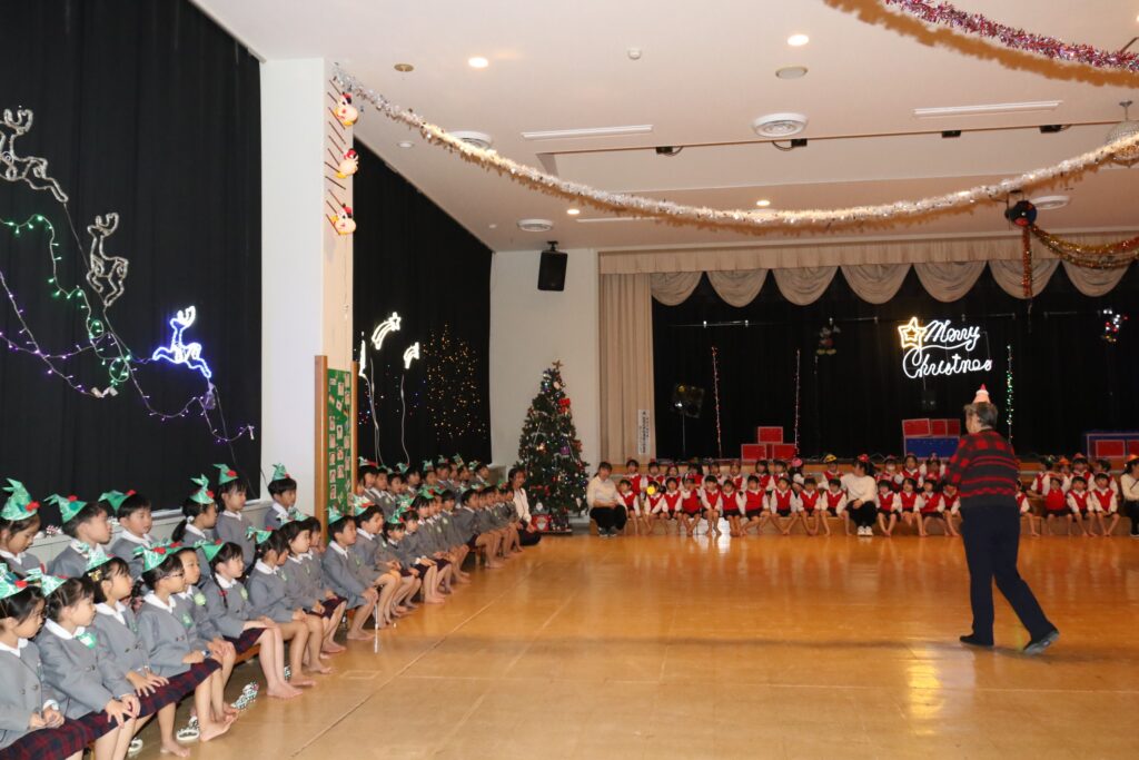 全員で『メリークリスマス』を歌い、園長先生の話を聞きました。