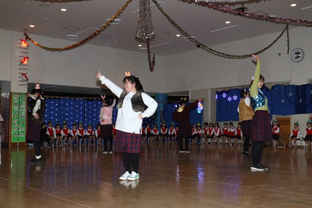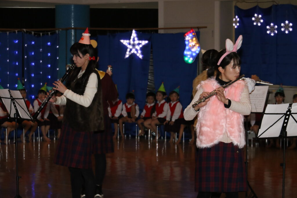 先生方からの劇のプレゼントでは、フルートやクラリネットなどの合奏や踊りをみることができました。