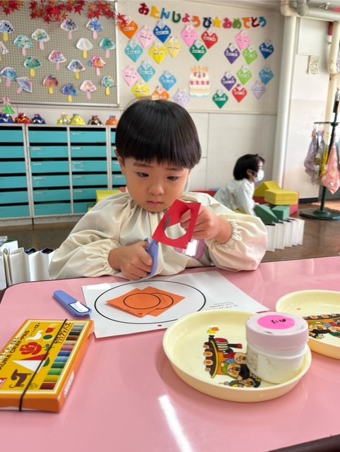 刃を開閉させ、紙を回しながら切るというとても難しい活動ですが、「がんばってみよう」と張り切っていました。
