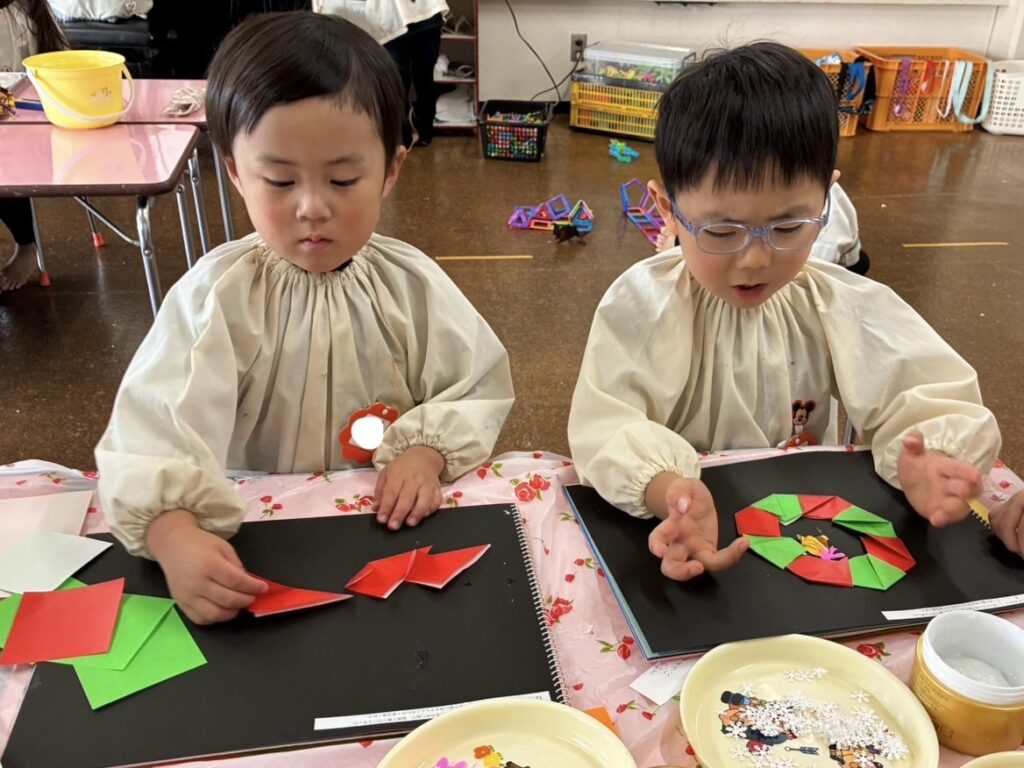 お部屋では、「ジングルベル」「あわてんぼうのサンタクロース」などクリスマスの歌も歌っています。