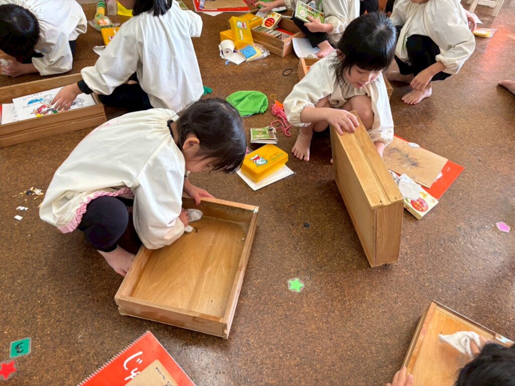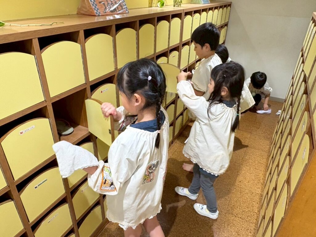 下駄箱の中も拭きます。すると「先生、端の方に砂が溜まってるね。」と気づくことができました。