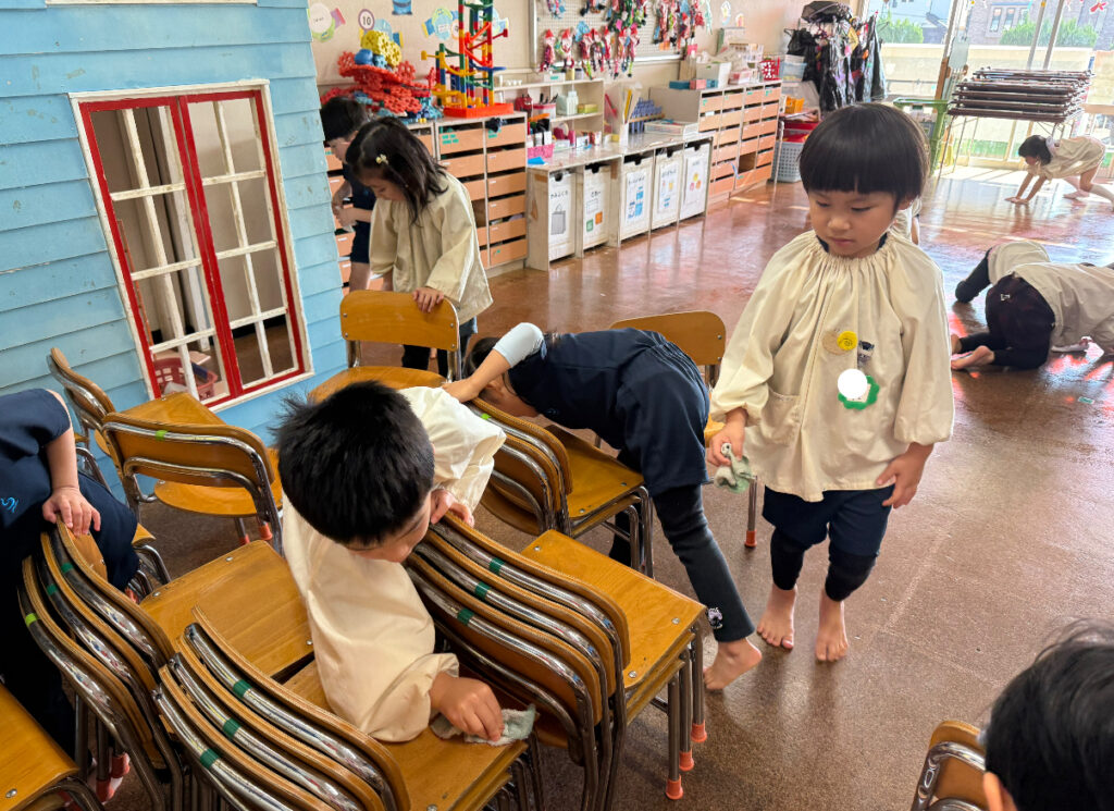力を込めてお掃除すると、「お部屋がきれいになって気持ちがいいね。」と話していました。
