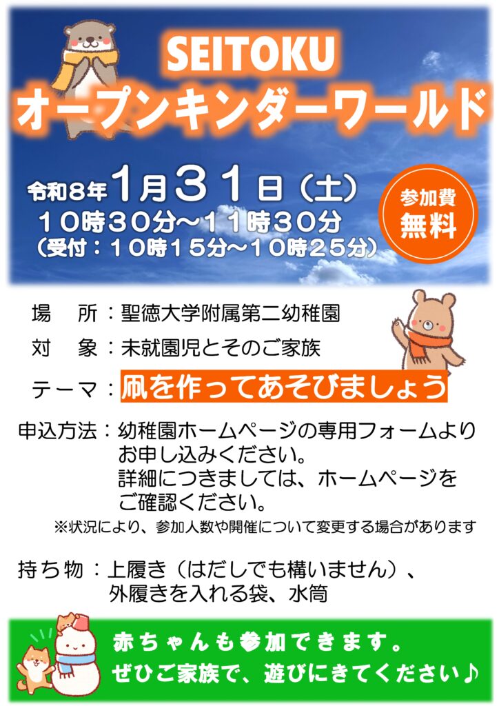 『SEITOKUオープンキンダーワールド』を開催します♪