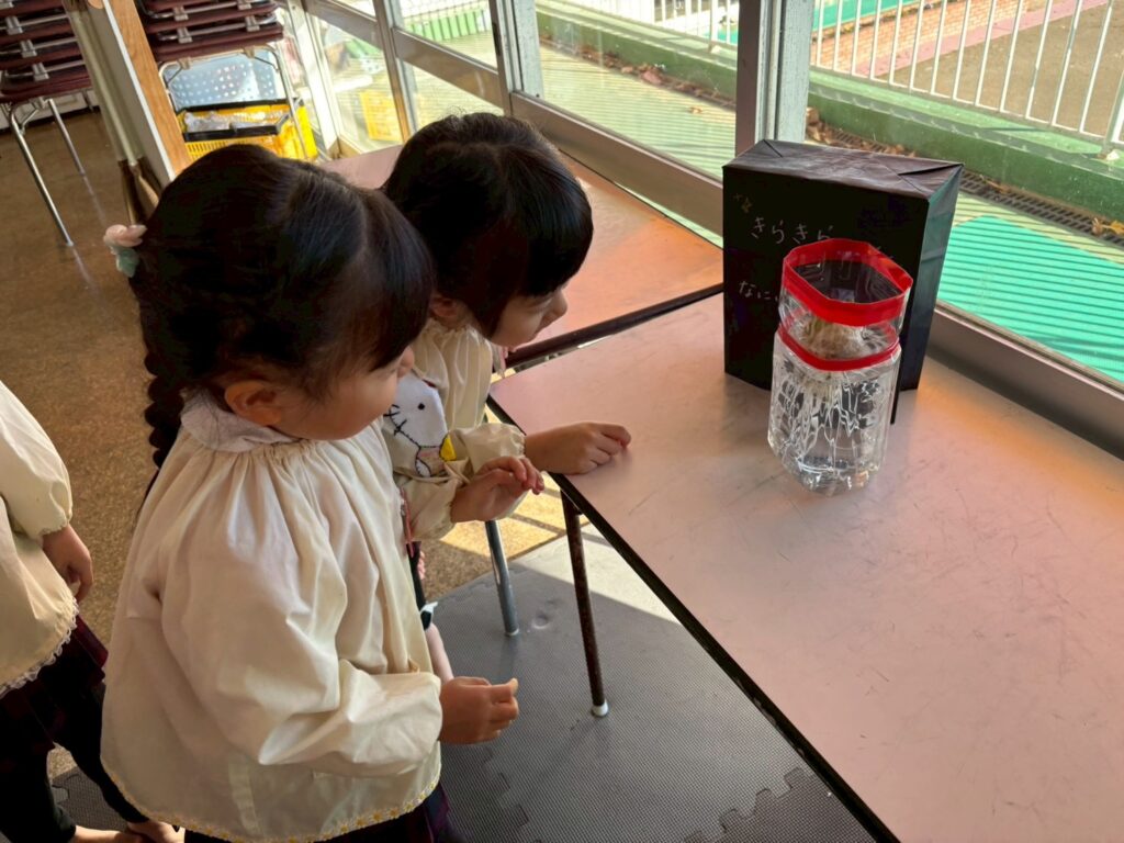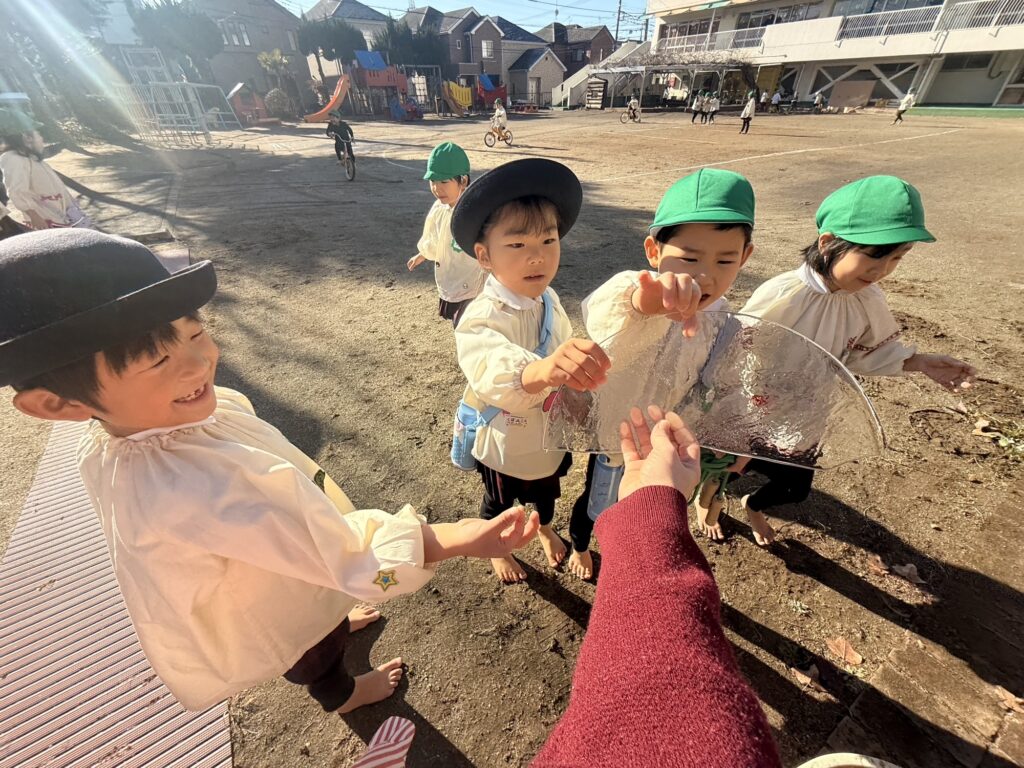 園庭では、冬ならではの「氷」や「冷たい土」の感触を味わう姿がありました。