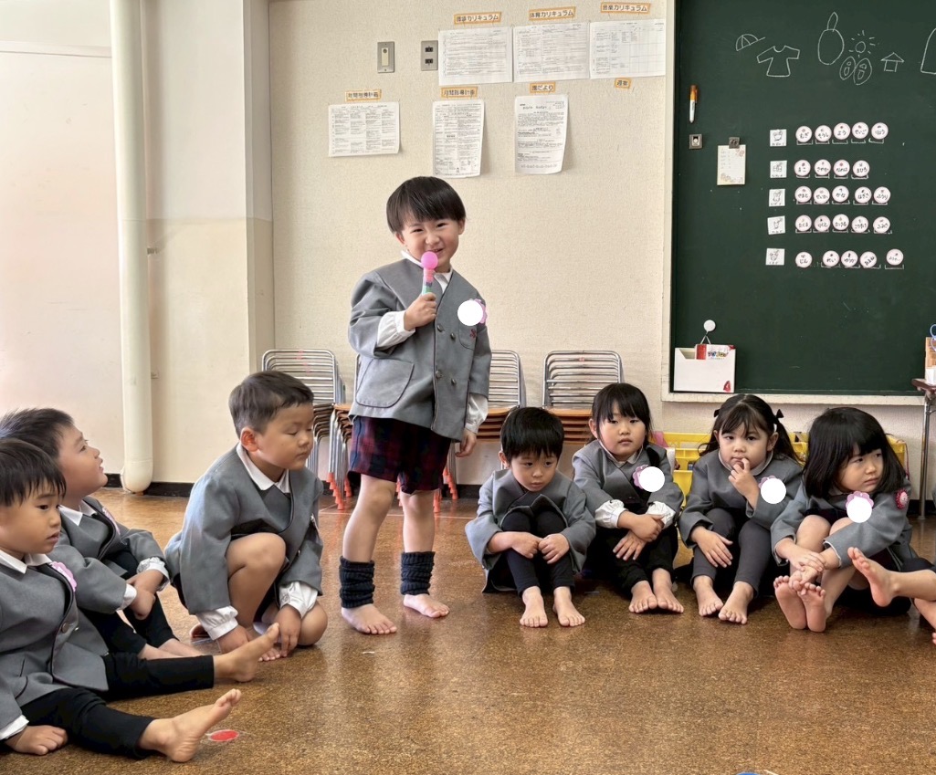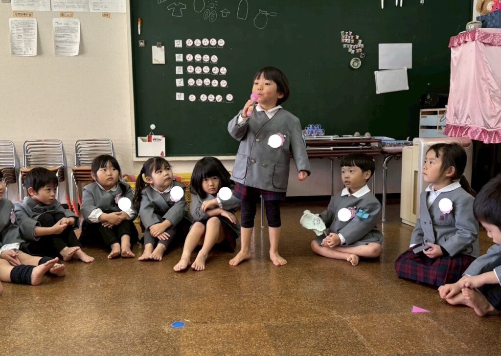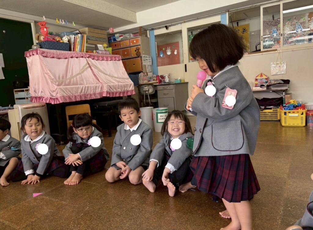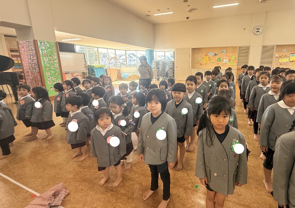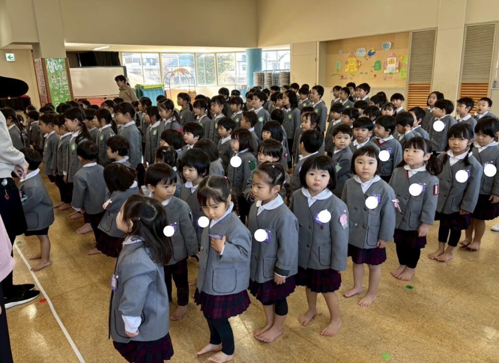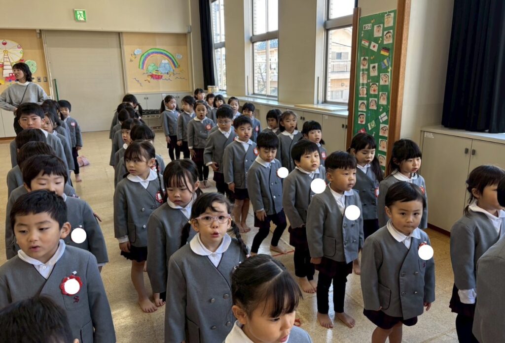 まず始めにピアノに合わせてお辞儀をし、園歌を歌い、始業式が始まりました。