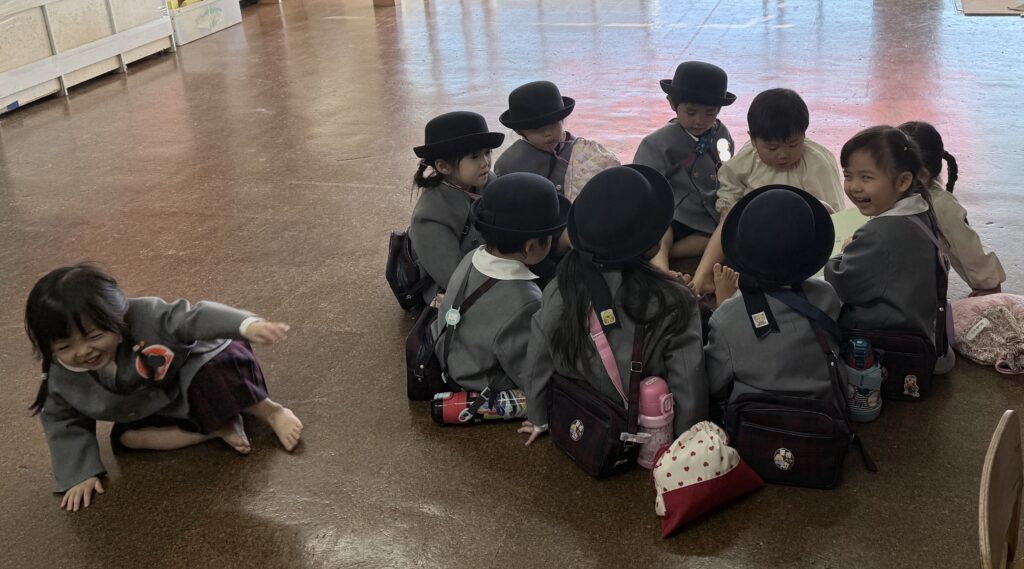 生活面でも今週から、幼稚園に制服で登園したら体操服に着替え、降園する前には、制服に着替える活動を始めました。