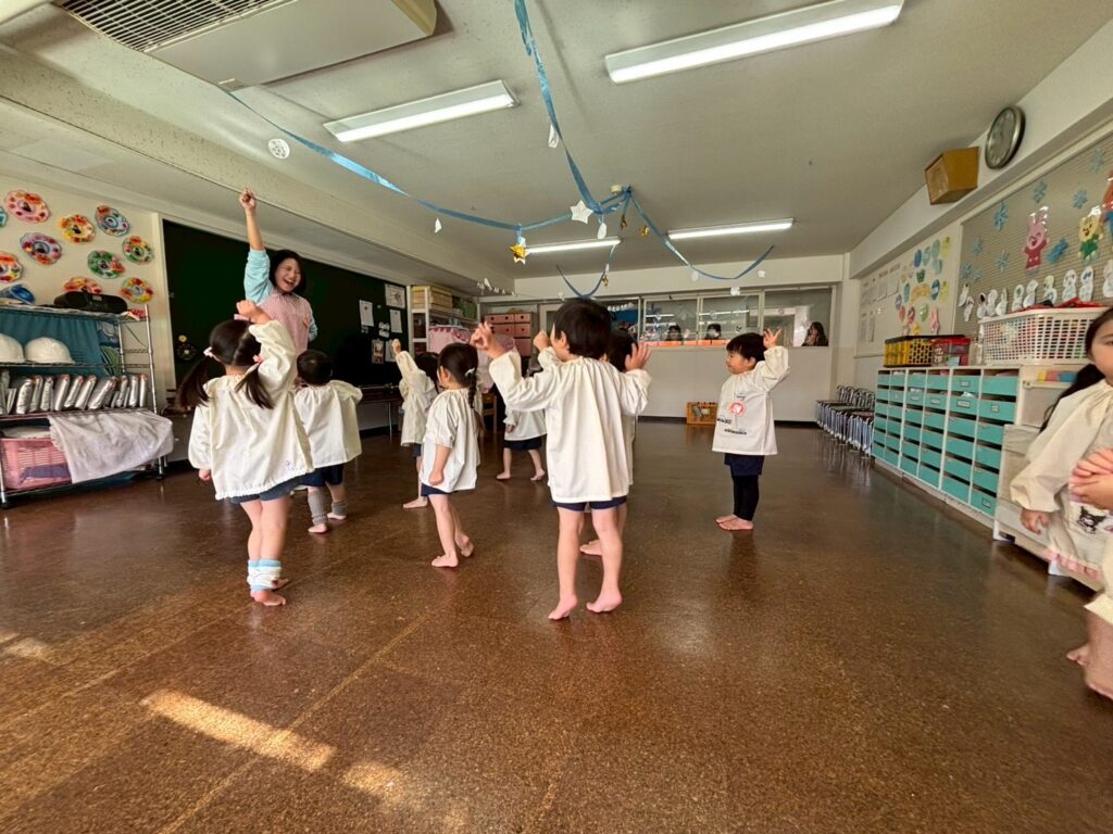 これからも寒い日は続きます。手洗いうがいをして体調を整え、『たのしみまショー』でみんなが楽しめるよう、たくさん体を動かして遊びましょうね。