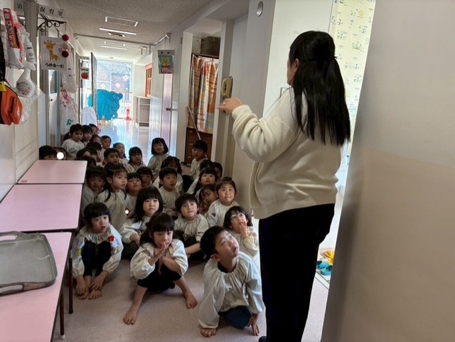 降園準備中や給食中など学年によって活動内容は様々でした。