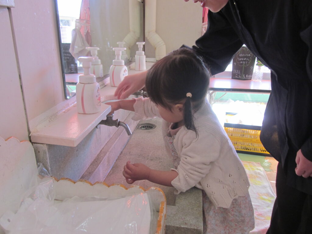 そのあとは、幼稚園のトイレの中を見てみたり、手洗いもしました。