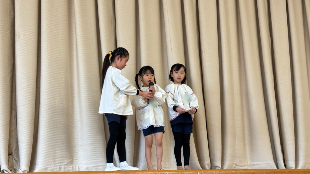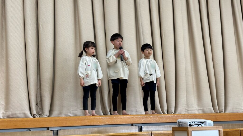 5歳児松組のはじめの言葉で豆まき会が始まりました。