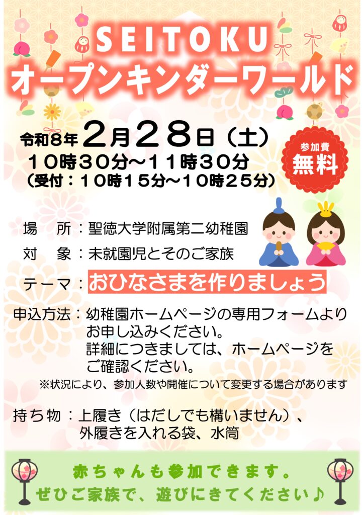 2月28日(土)SEITOKUオープンキンダーワールド(SOK)のお申し込み
