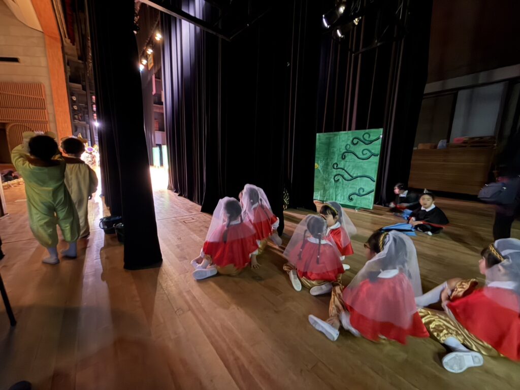 先生の話を聞くことが上手になり、舞台裏でも座って静かに待つことができるようになりました。