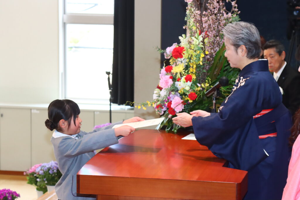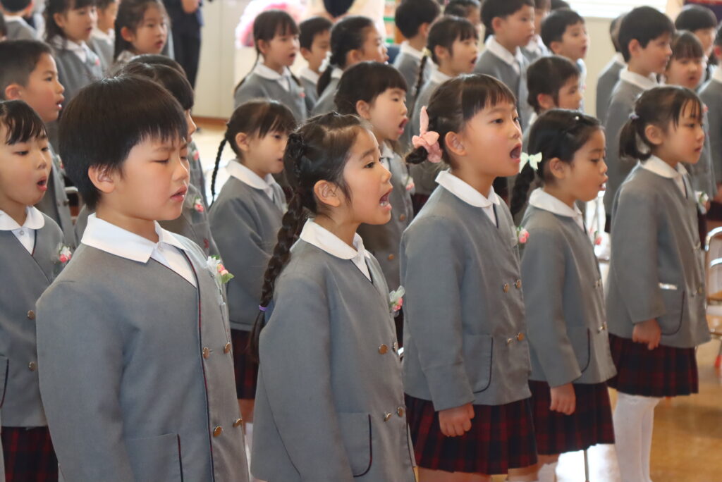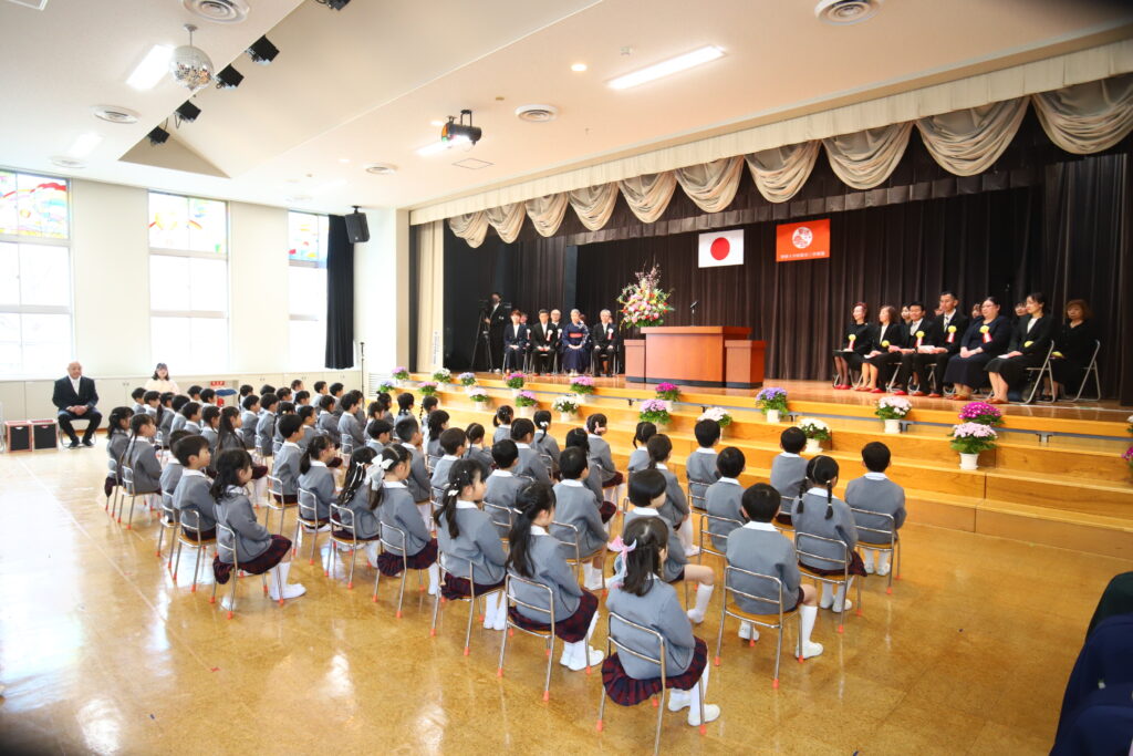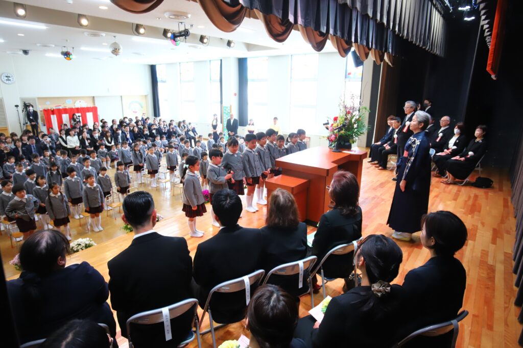 厳粛な雰囲気の中式が始まり、緊張感を味わいながらもお辞儀をしたり、歌をうたうことができました。
