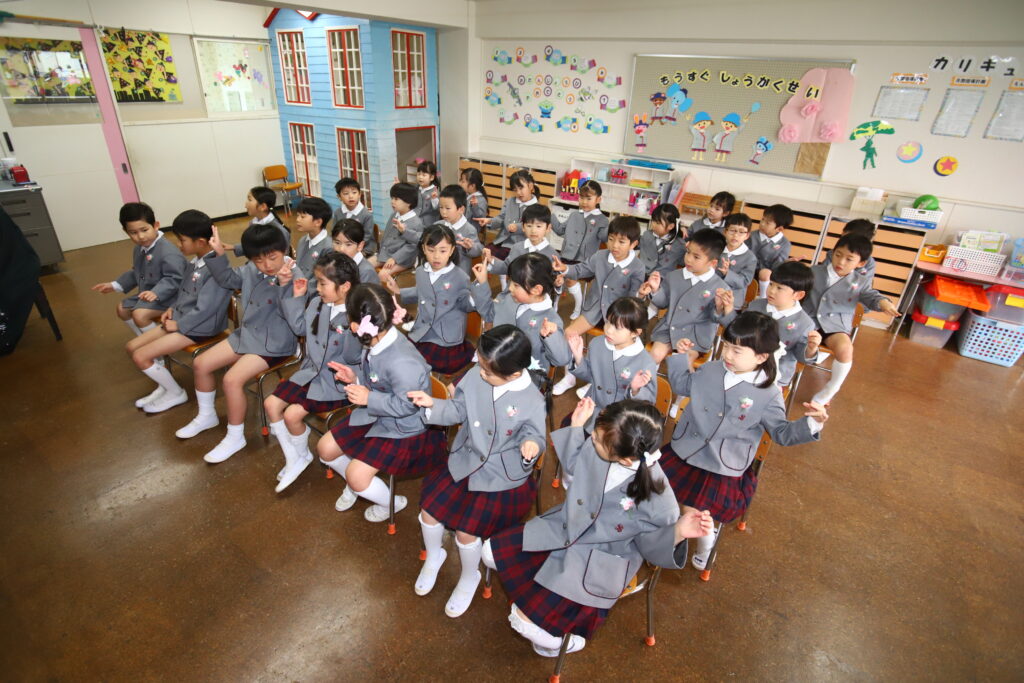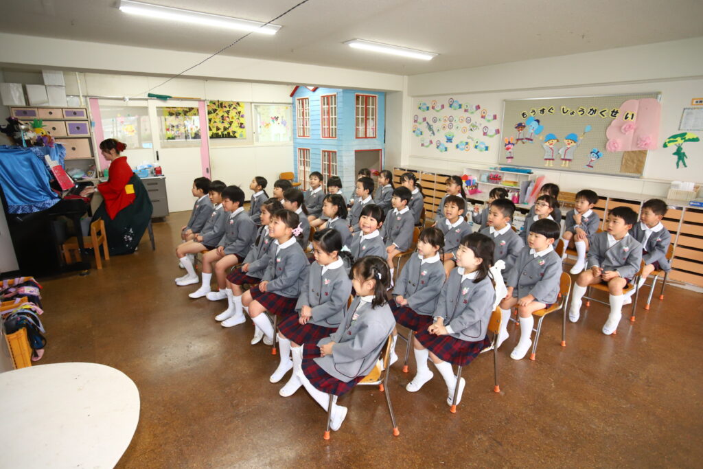 会が始まる前に、先生や友達と保育室で歌や話を聞いて待ちます。