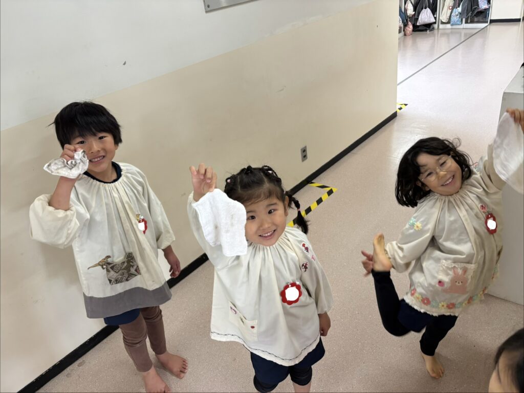 明日は修了式です。にこにこ笑顔で登園してきてくださいね。