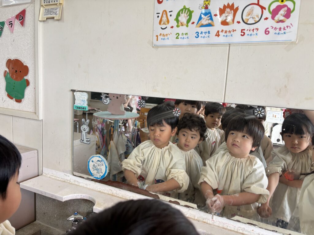 また、手洗いの方法を確認しながら丁寧に行い、衛生面にも気を付けられるよう意識を高めます。