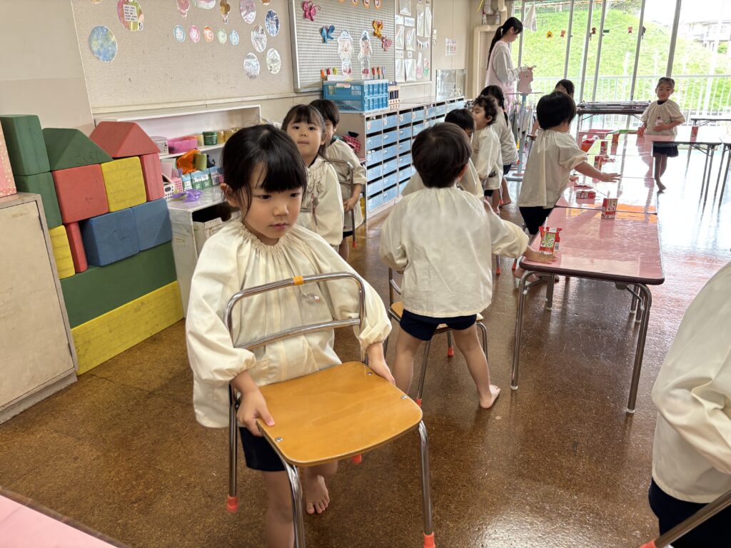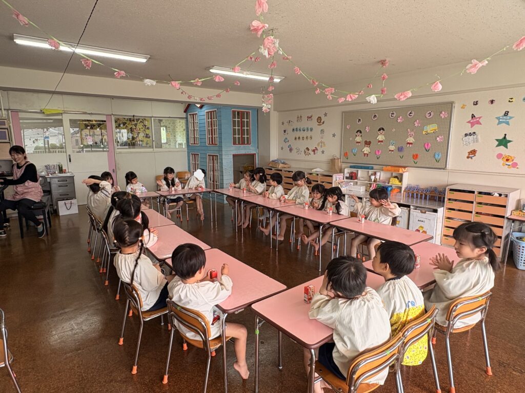 来週から給食が始まるため、幼稚園では2回に分けて【ならし給食】を行います。