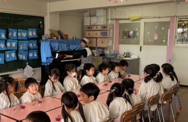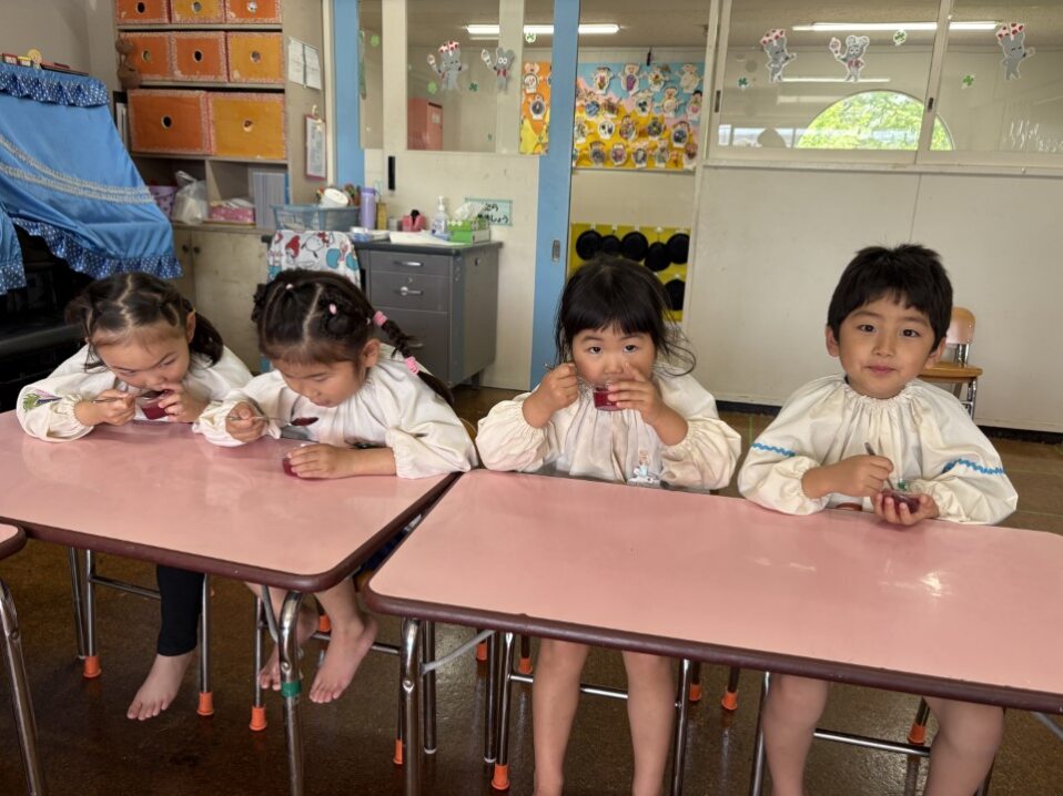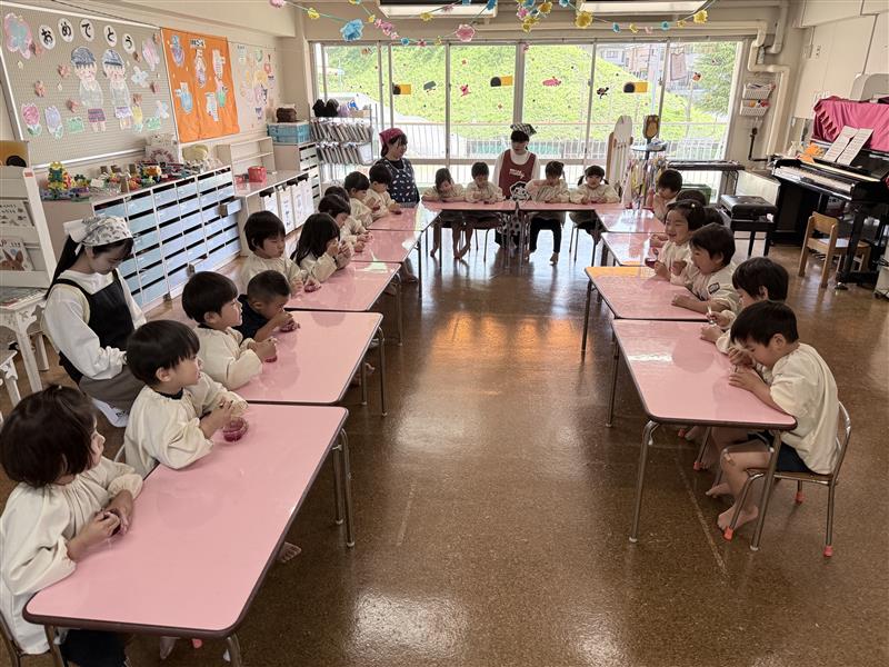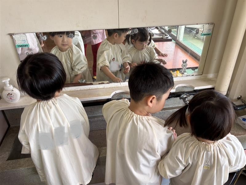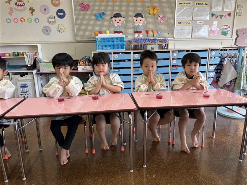 給食をいただくときには、手を洗うこと、椅子の持ち方、また、落ち着いた気持ちで待つことを給食を食べるときのやくそくとして各学年で確認しながら、給食をいただきます。