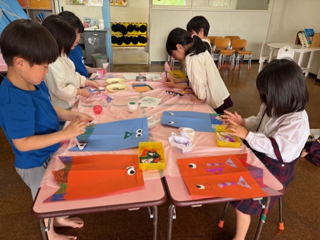 こいのぼり作りでは、しっぽの部分に色を塗り…