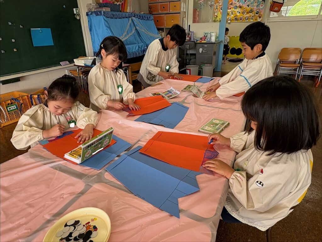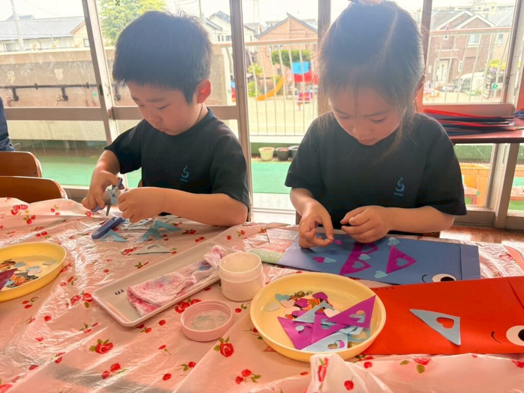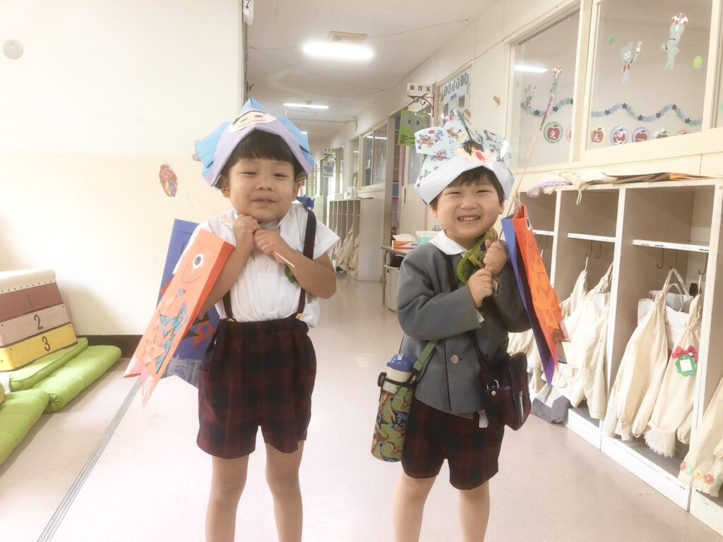 幼稚園では「こいのぼり」と「カブト」を自分たちで作りました。