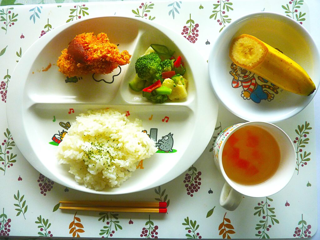 10/3 🍌パセリライス・コンソメスープ・チキンカツ・イタリアンサラダ・バナナ🍌