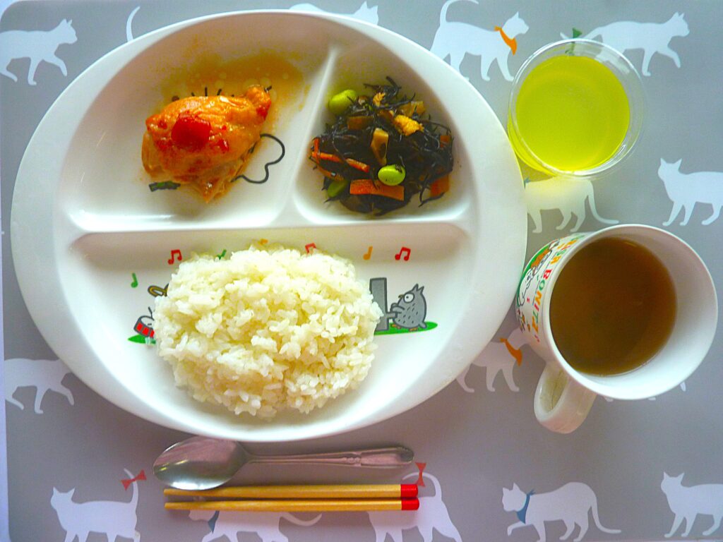 10/21 🍅ご飯・オクラの味噌汁・トマトの照り焼きチキン・ひじきの煮物・グレープフルーツゼリー🍅