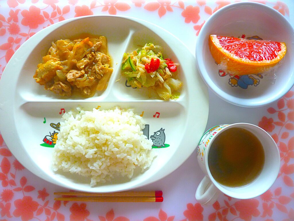 10/27 🥒ご飯・ほうれん草の味噌汁・すき焼き風煮・和風ツナサラダ・ルビーグレープフルーツ🥒