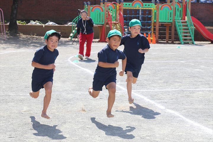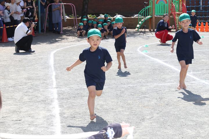 「負けて悔しい!」と泣いているお友だちもいましたが、一人ひとりが一生懸命頑張って走っていました☆