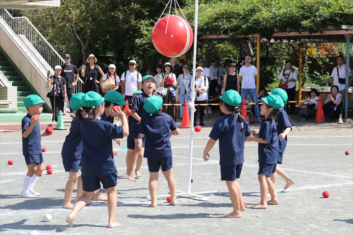 鈴割りでは、紅組と白組に分かれて赤と白の鈴めがけて球を投げました🔴赤の鈴からは『チップとデール』、城の鈴からはトイストーリーの「リトルグリーンメンとハム」が出てきて、松組のお友だちも大喜びで見ていましたね👀✨