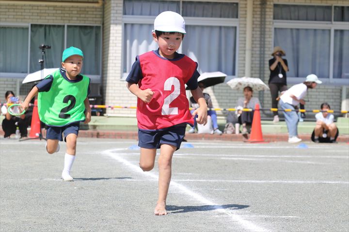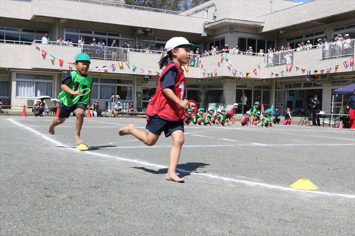チーム対抗リレーは2チームに分かれて走りました。チームごとに走っている友だちを応援し、白熱したレースになりました!子どもたちだけでなく保護者の方々の声援もたくさん聞こえ、松組のお友だちも更に力を発揮して走ることが出来ましたね!!