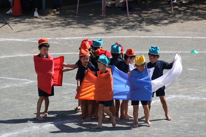 マスゲームでは、友だちと心を合わせて動き協調性をもって行なうことが出来ましたね。そして、クラスのお友だちみんなで一つの演技を行なうことが出来、達成感や充実感を味わい、喜びを感じていましたよ🌈✨