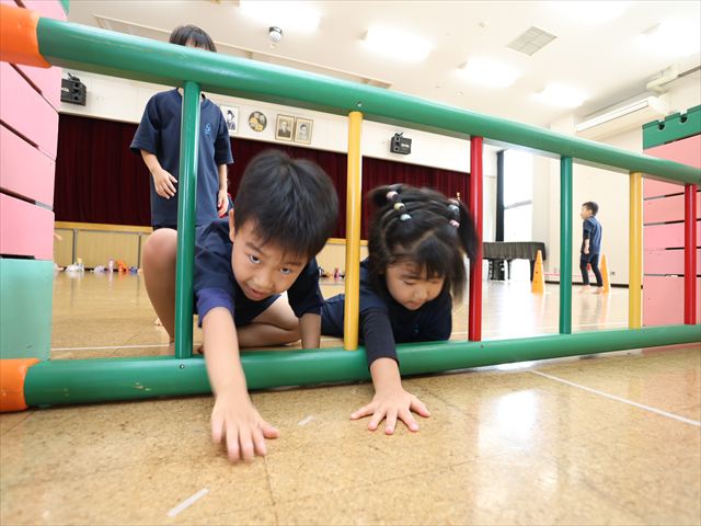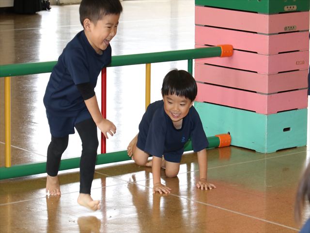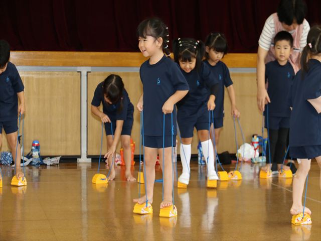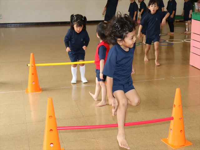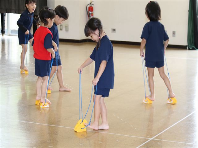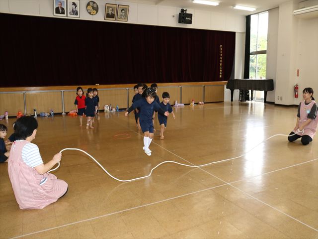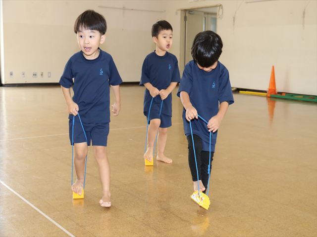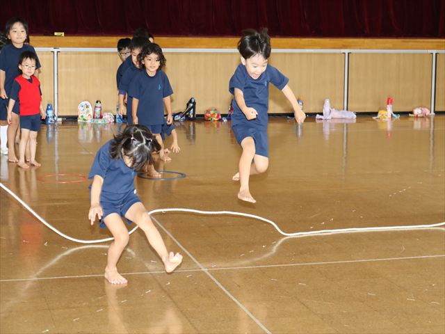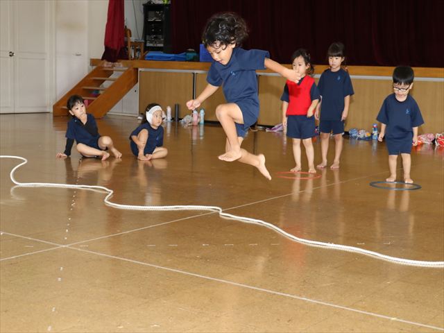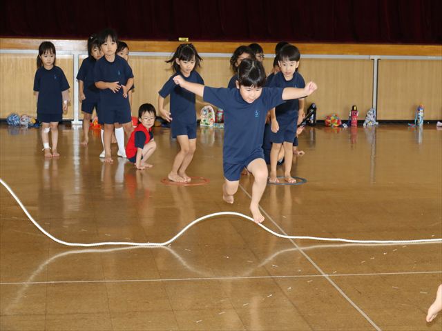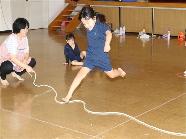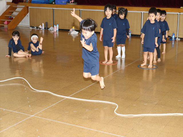 動く縄をジャンプして飛び越えました🌈横や縦に動く縄に当たらないように気を付けながらジャンプ🌟