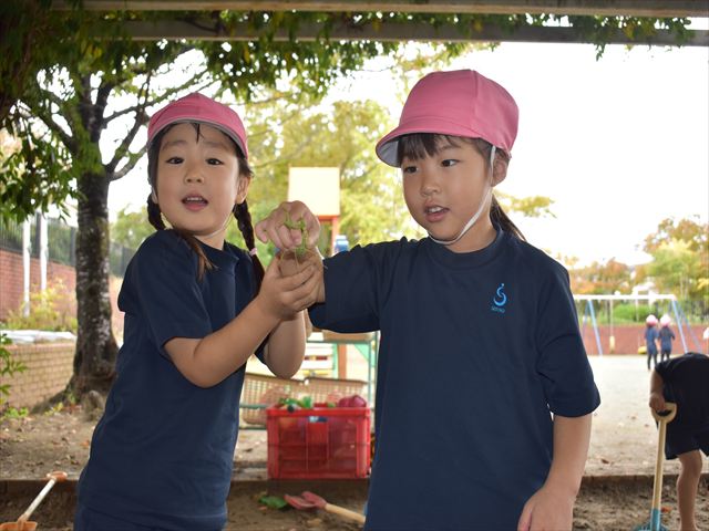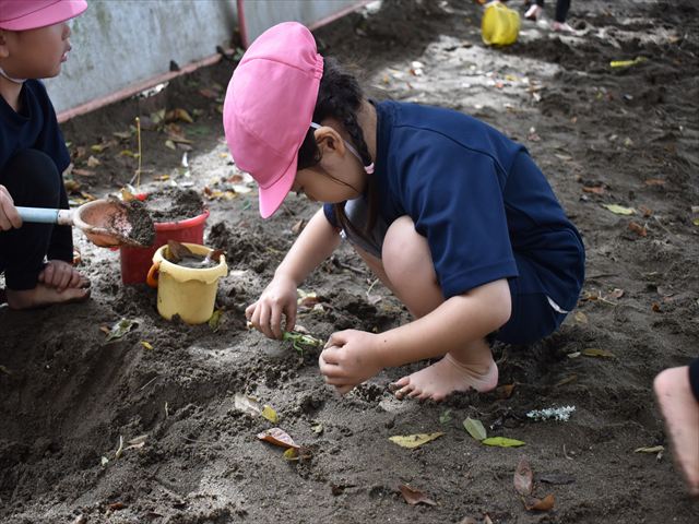 『秋』を感じる日が続いていますが、砂場で『カマキリ』を見つけました😲