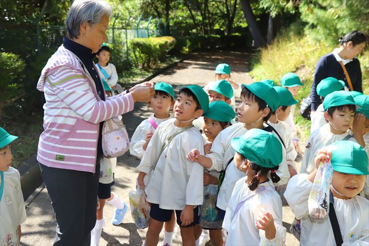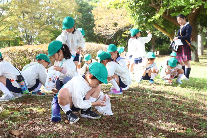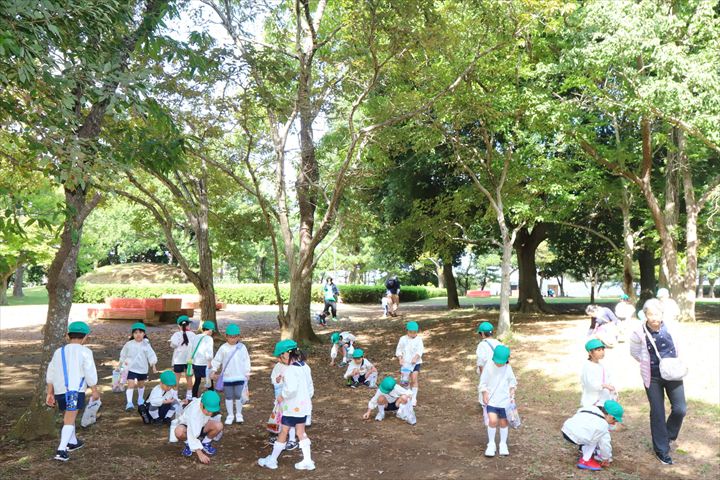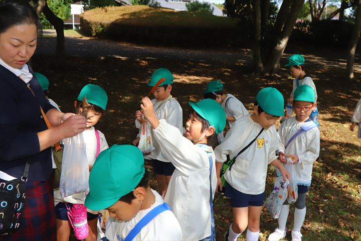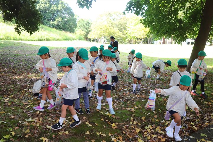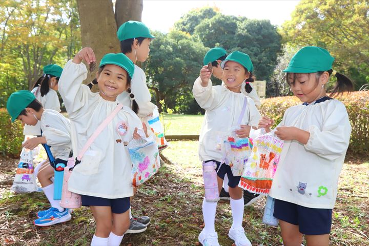 朝から「今日の遠足楽しみだね」「どんぐりたくさんあるかな?」と友だちや先生と一緒に話し、園外保育をとても楽しみにしているようでした。