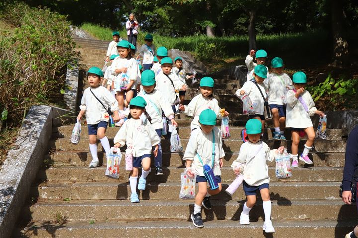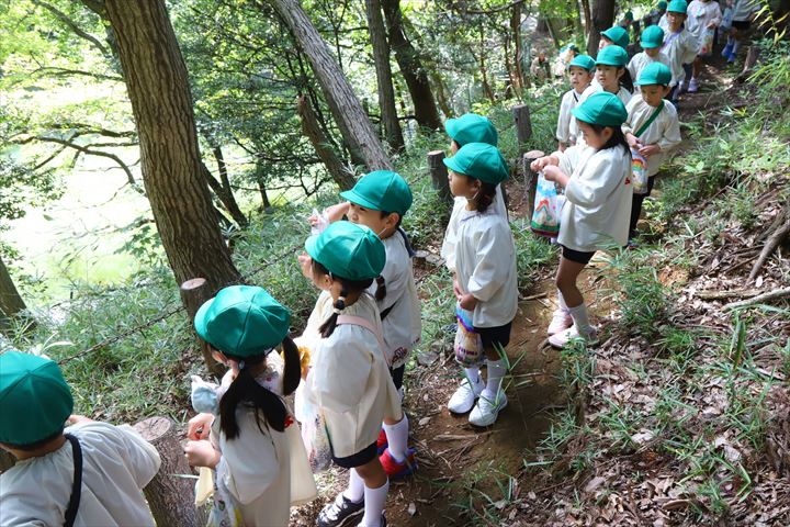 歌を歌ったりどんぐりを拾ったりしながら木々の間を通り、散策することも楽しんでいましたよ☆
