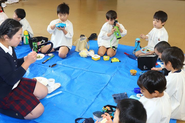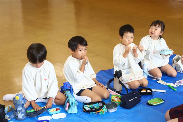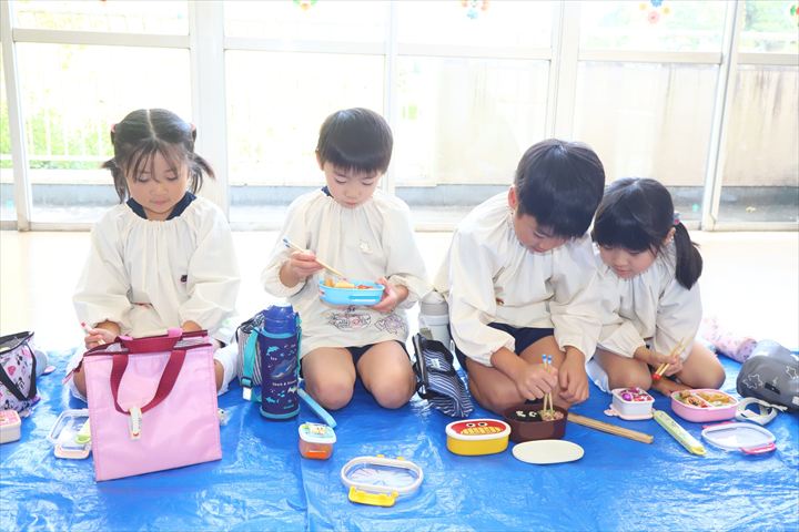 幼稚園に戻ってくると、いよいよお弁当の時間です🍱