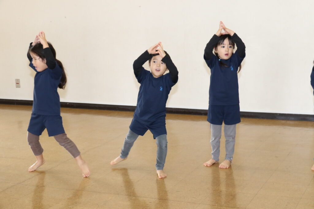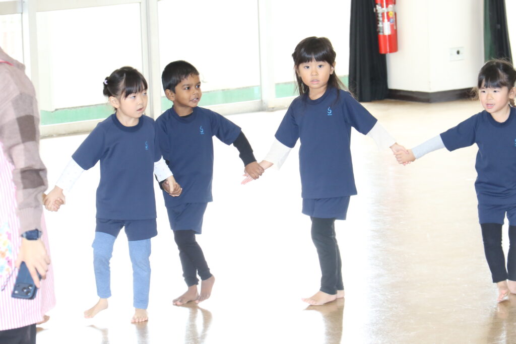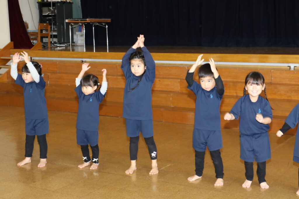 踊り「さつまいーもん」はお友だちと手を繋ぎ円になって踊りました♪